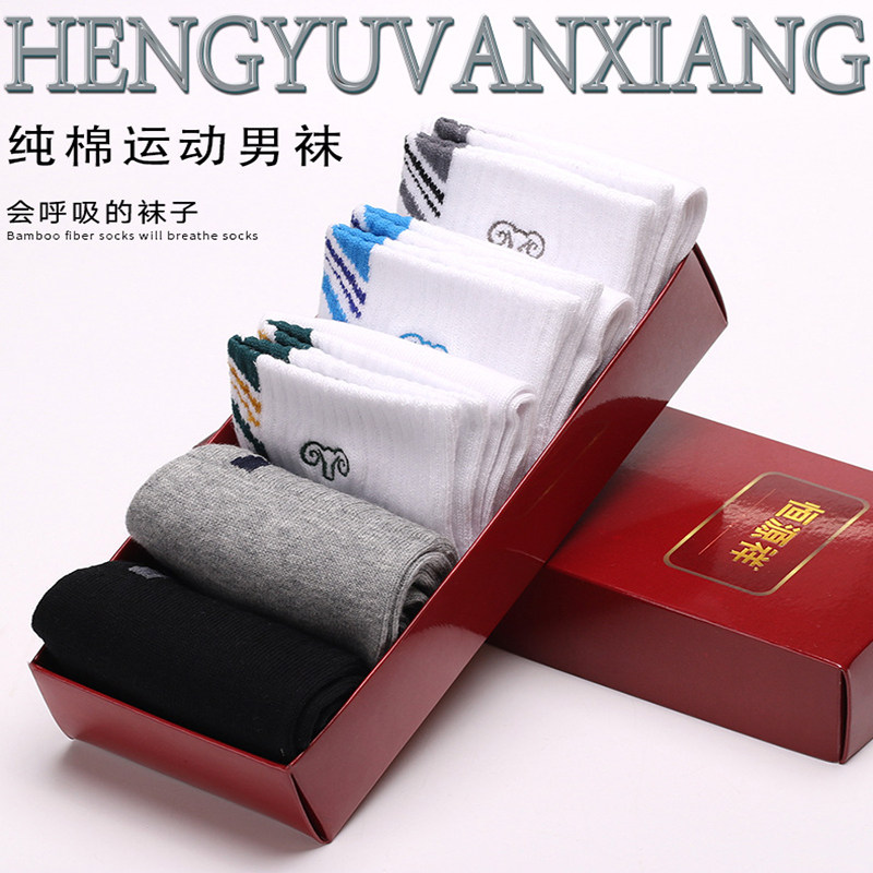 恒源祥纯棉袜子男100%棉秋冬季中筒男袜防臭吸汗运动商务男士棉袜
