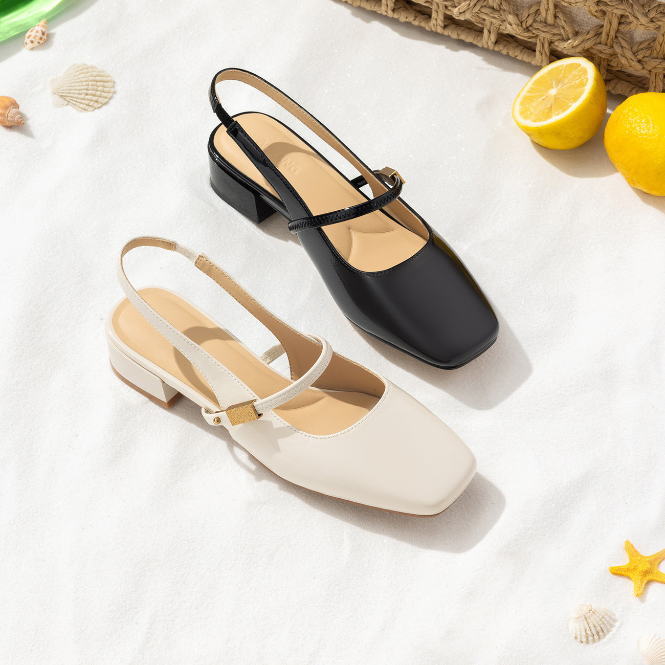 奥康 女鞋2025夏季穆勒鞋气质方头后空绊带外穿拖鞋中跟门店发货