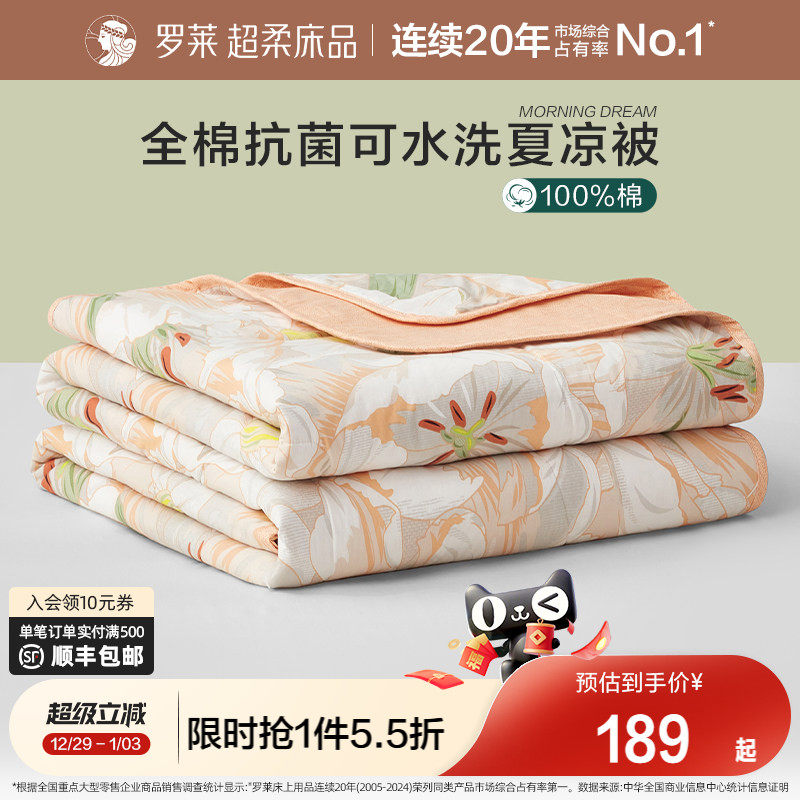 罗莱家纺夏季被子被芯空调被学生宿舍双人床全棉抗菌纤维水洗夏被