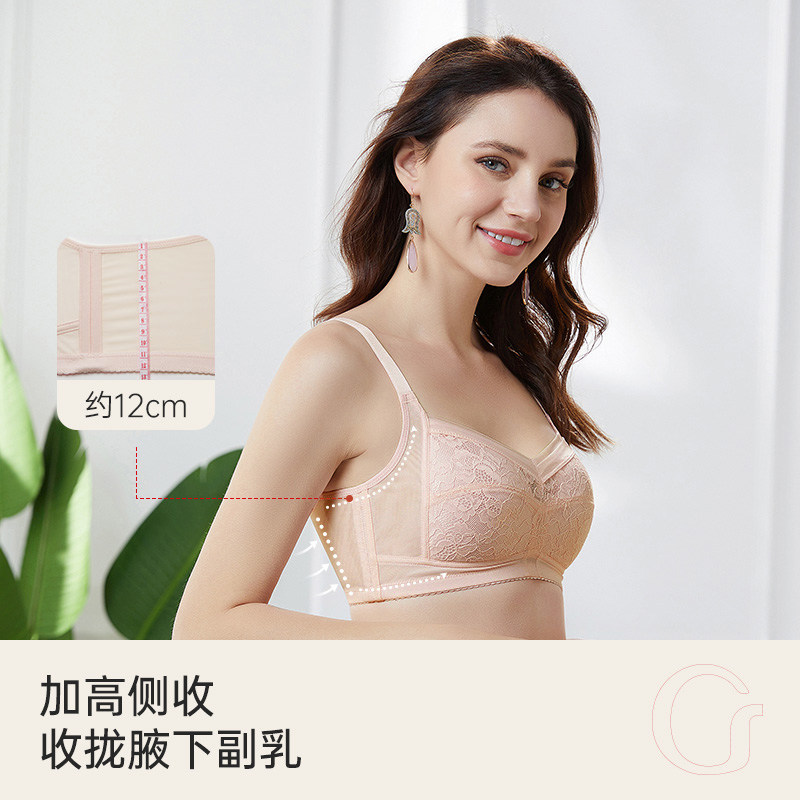 古今大胸显小收副乳防下垂聚拢无钢圈舒适文胸显瘦蕾丝杯内衣女