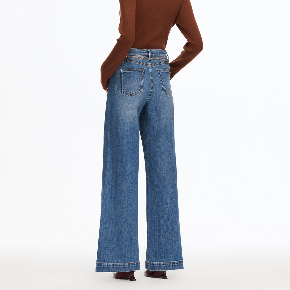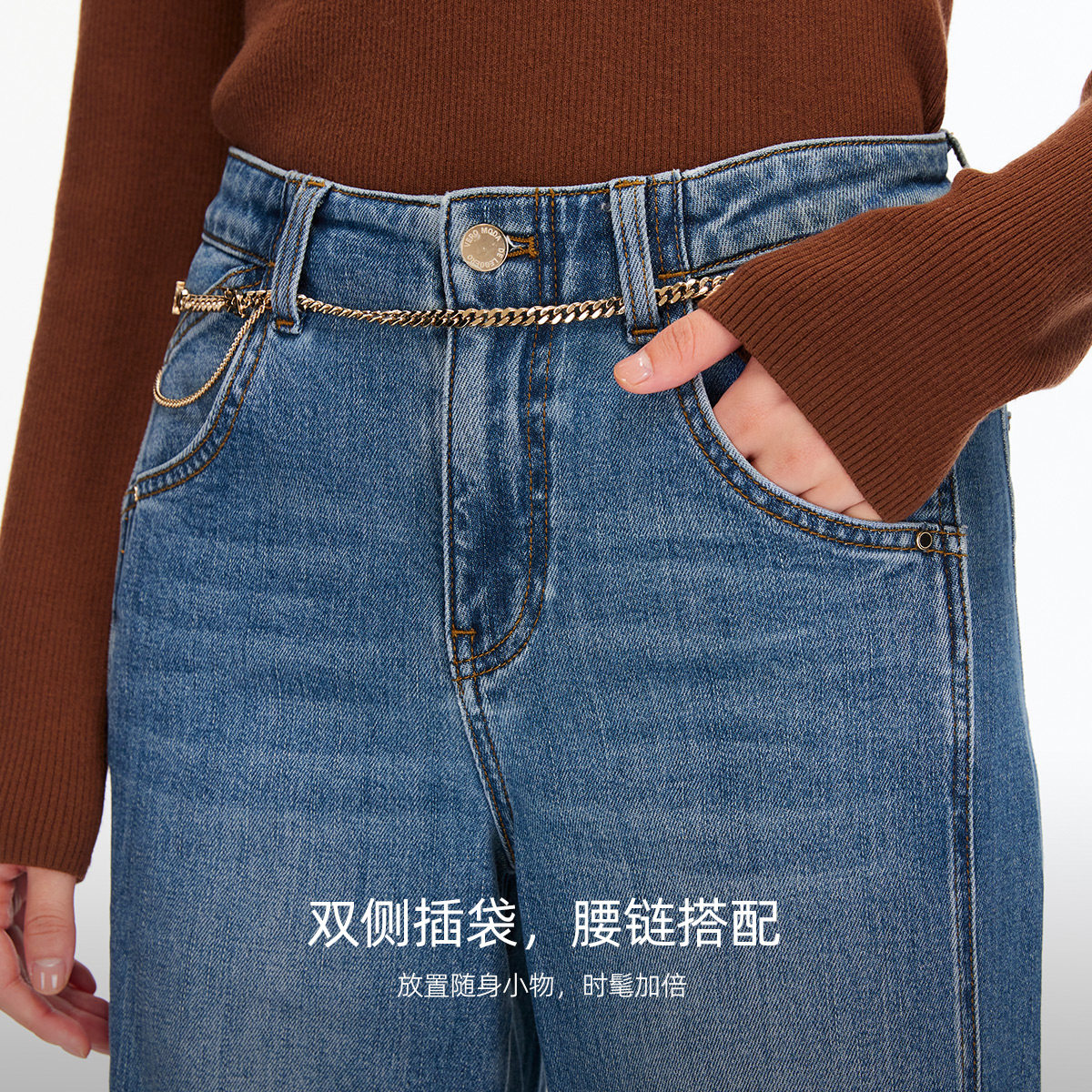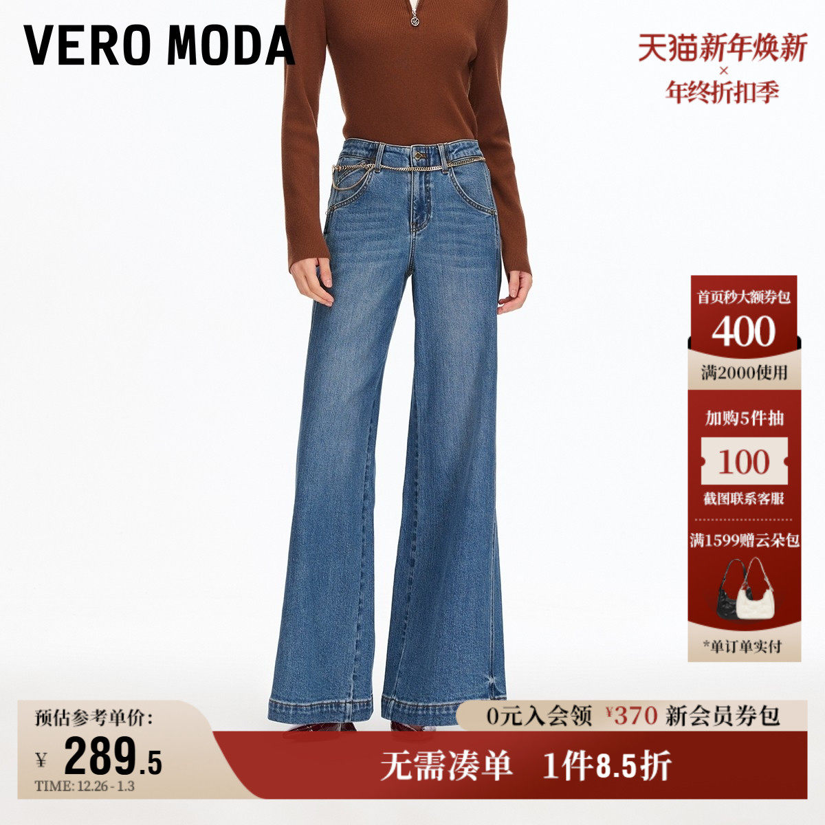 Vero Moda奥莱牛仔裤女2025秋冬新款含棉腰链做旧水洗阔腿裤高级