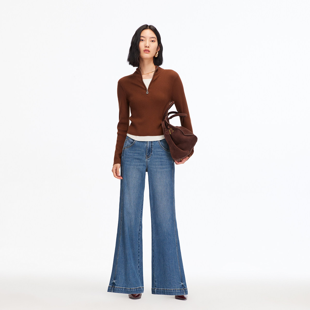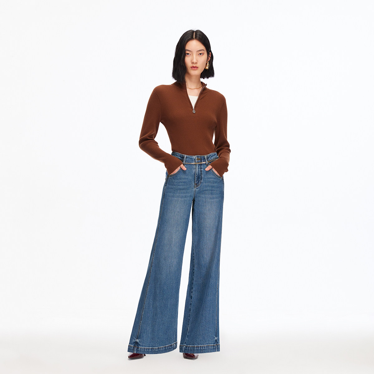 四面弹丹宁色牛仔阔腿裤25年新款宽松显瘦牛仔长裤89173