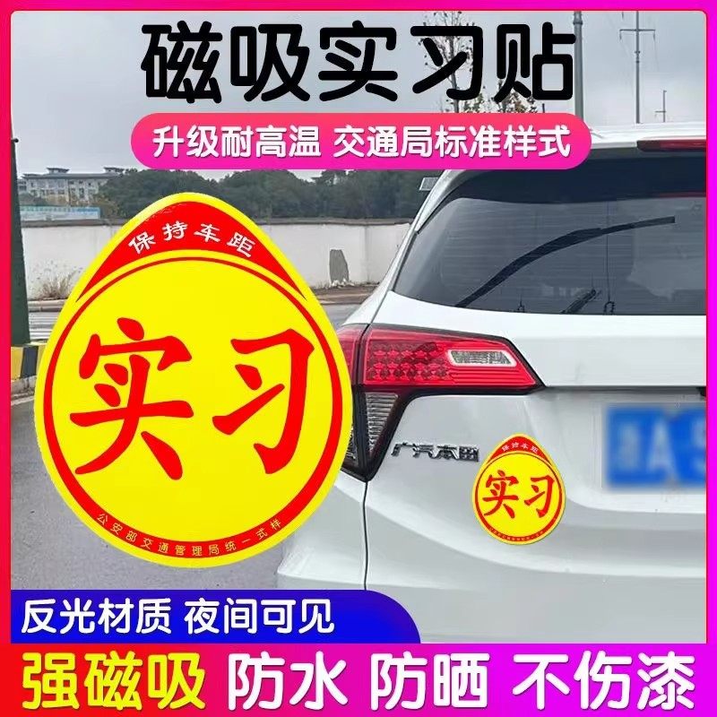 磁吸实习车贴新手磁性标志强反光贴粘贴吸盘式实习期女司机搞笑
