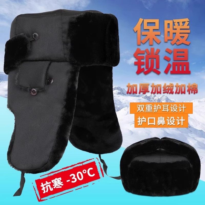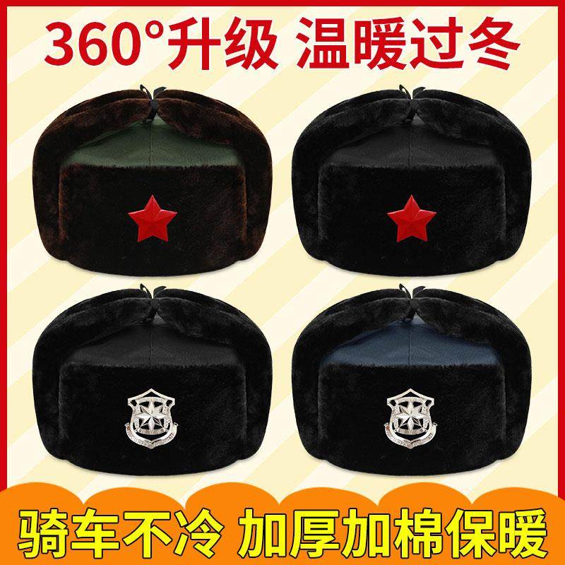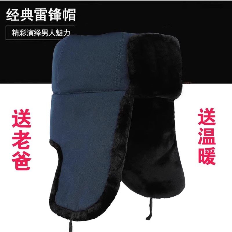 雷锋帽子男冬季加厚东北帽中老年护耳帽冬帽保暖棉帽加绒骑车防风