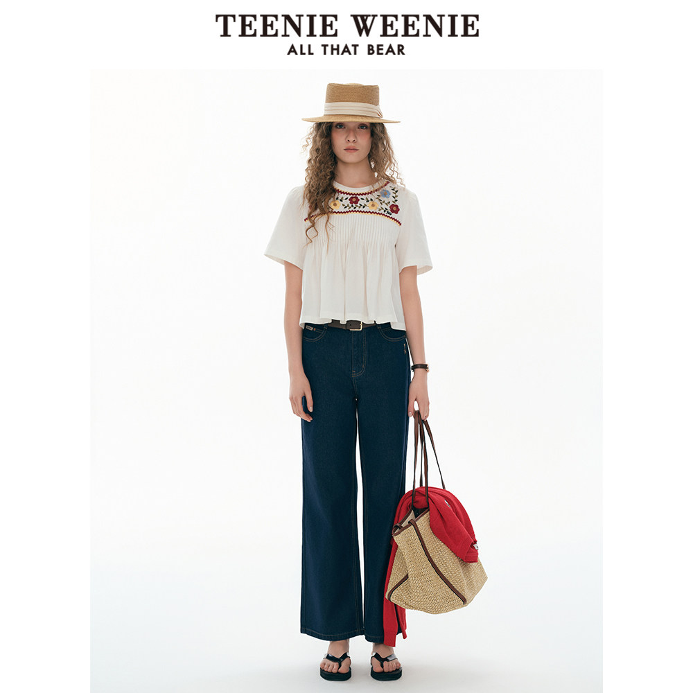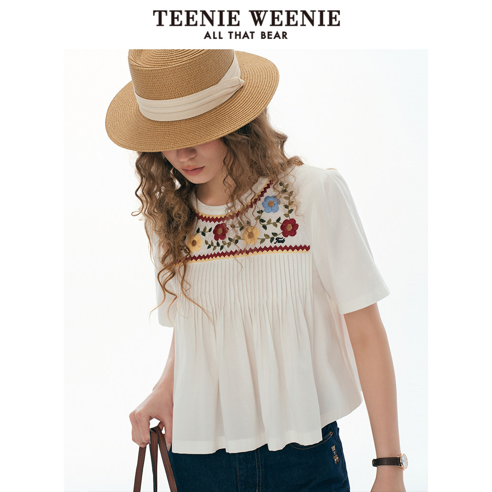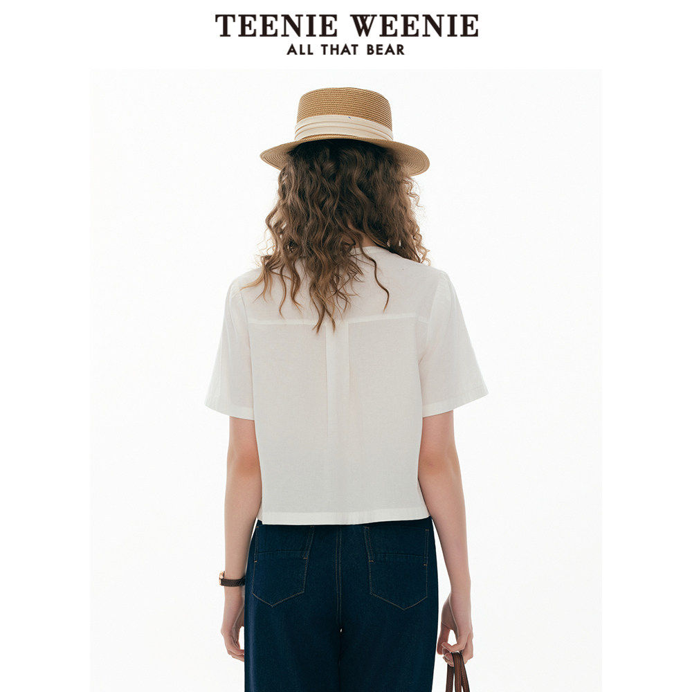 TeenieWeenie小熊奥莱女装衬衫2025年夏款甜美清新撞色拼接娃娃衫