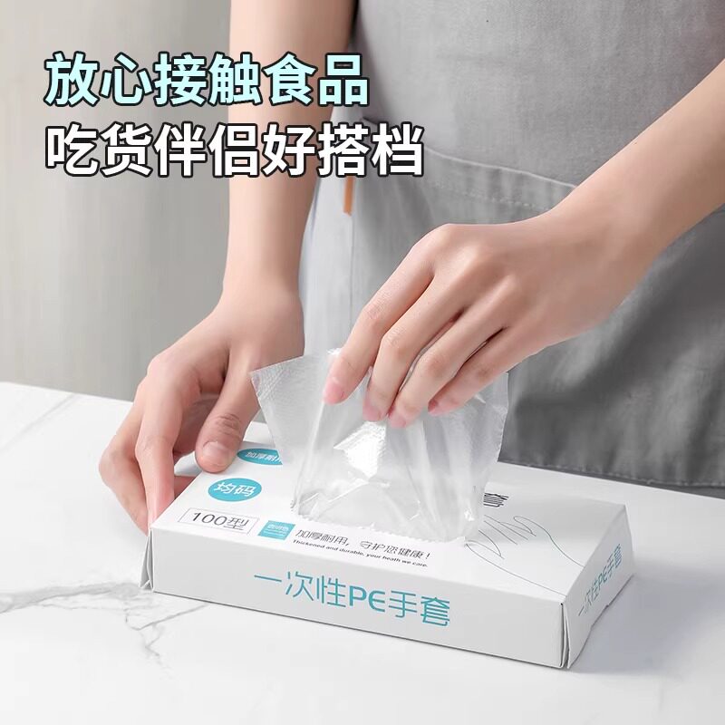 抽取式一次性pe手套加厚食品级餐饮塑料薄膜透明耐用耐磨手套清洁