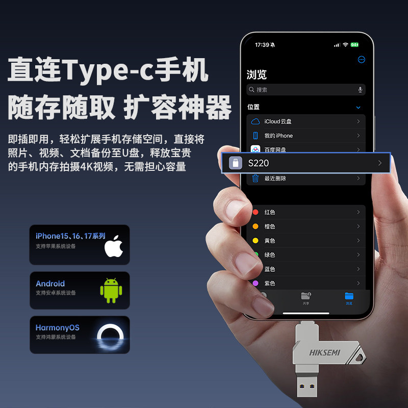 海康威视 手机U盘双接口大容量小巧迷你手机电脑高速优盘正品S220