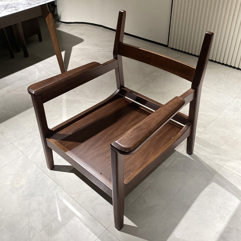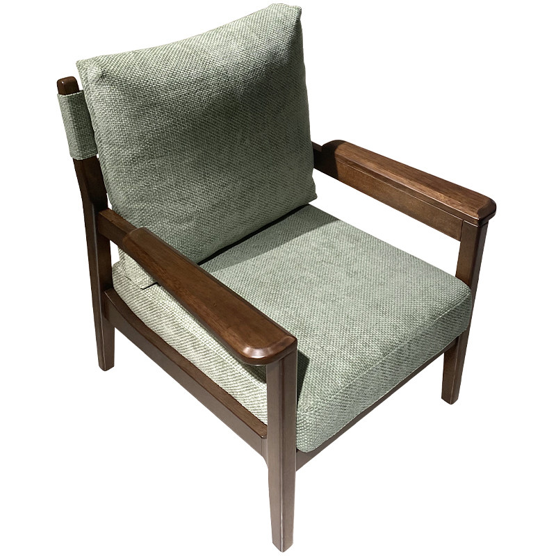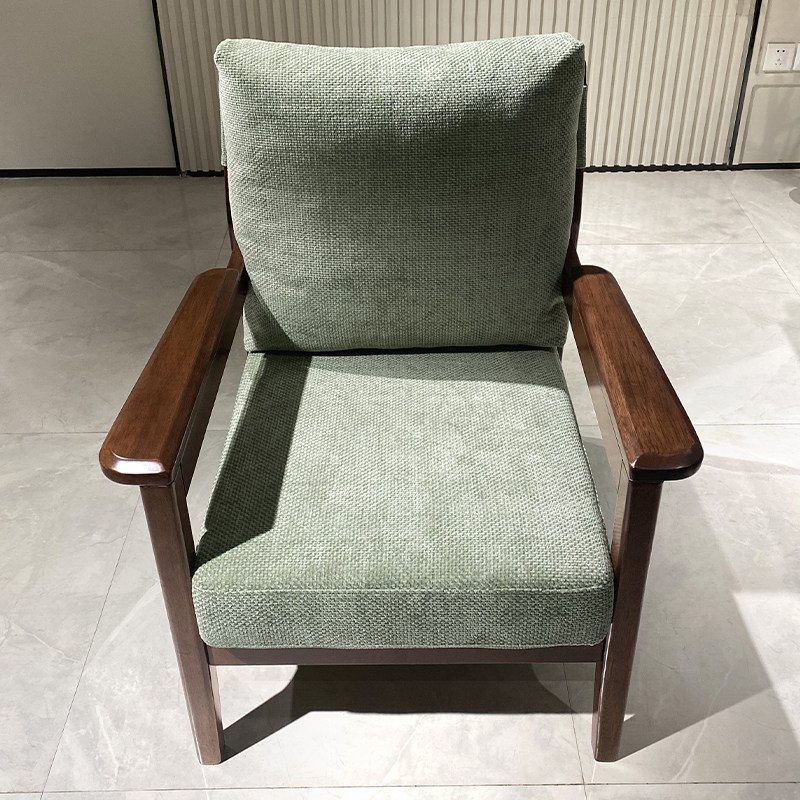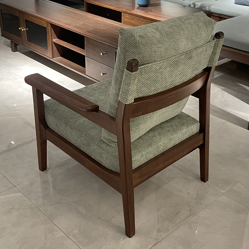 简约现代胡桃木休闲椅沙发椅客厅阳台家用全实木布艺单人椅扶手椅