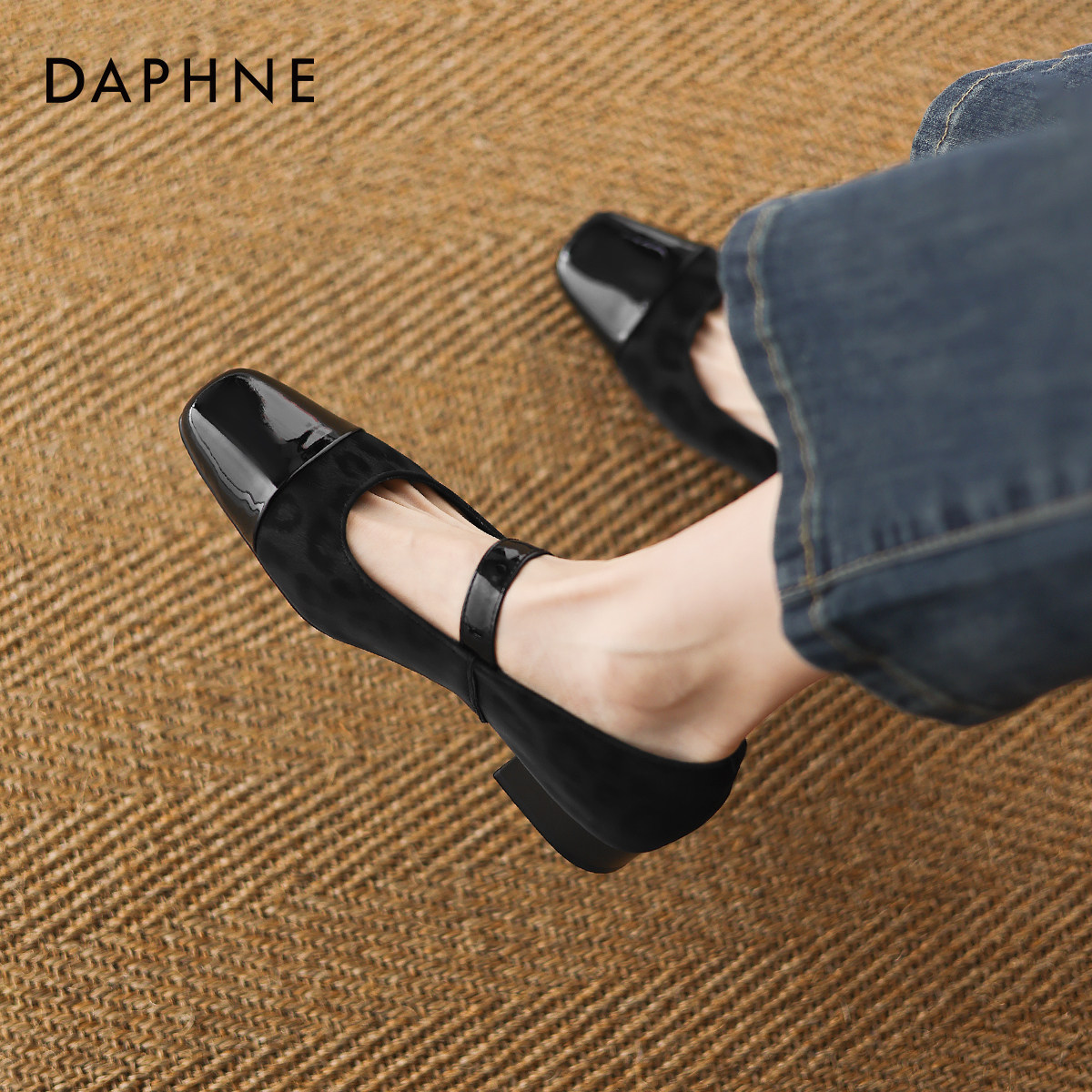 达芙妮豹纹单鞋女2026新款春季法式气质方头粗跟皮鞋玛丽珍女鞋子