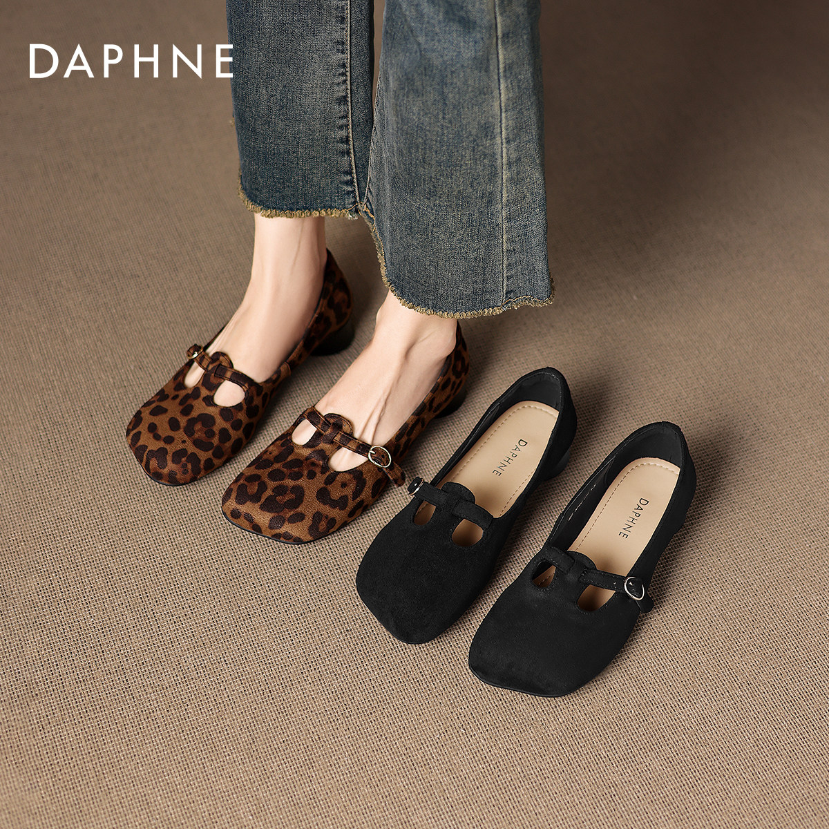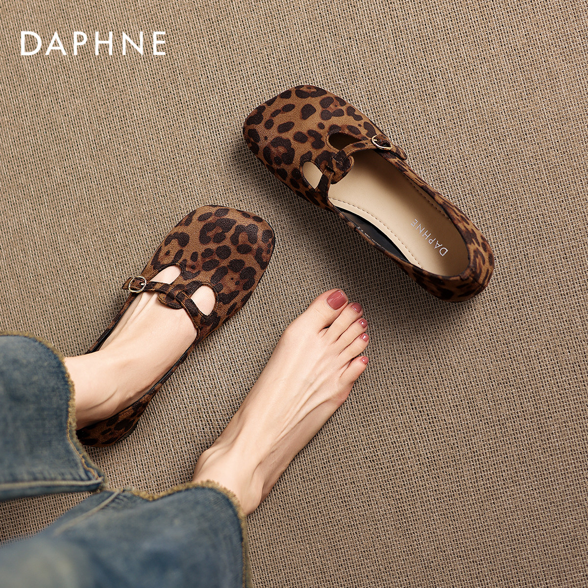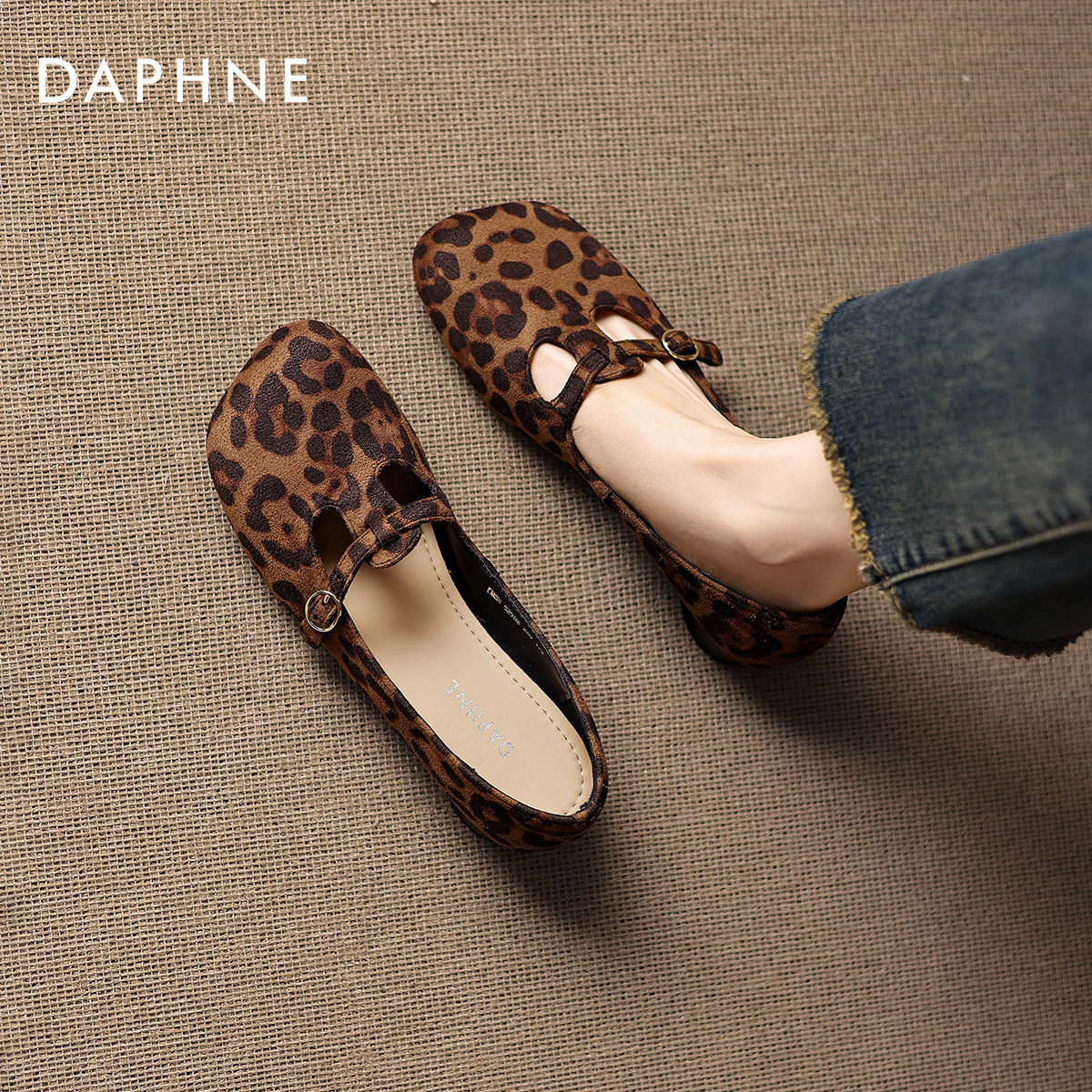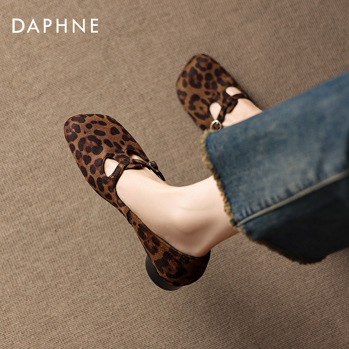 达芙妮豹纹单鞋女2026新款冬季复古法式小皮鞋浅口平底玛丽珍女鞋