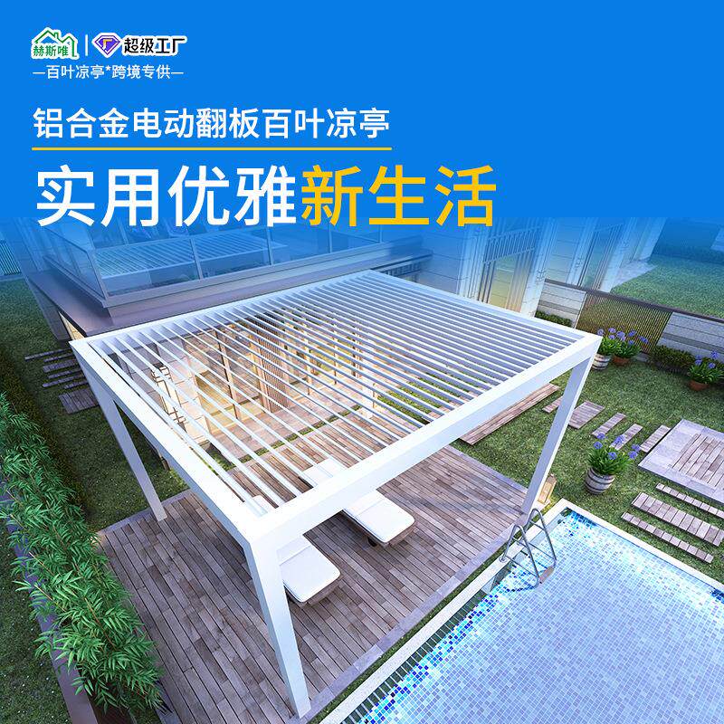 铝合金电动凉亭 轻型手动翻版百叶凉亭四周遮阳帘阳光房 海外直供