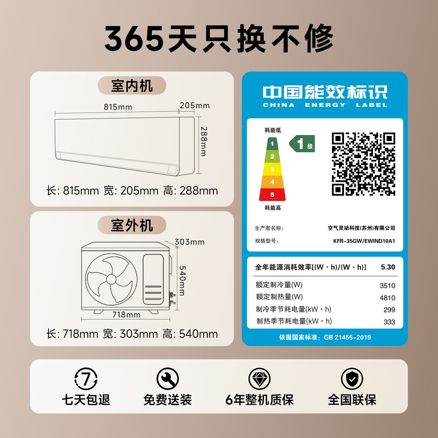 【纯铜管】海尔空调1.5匹1匹家用一级变频冷暖挂机净省电E1旗舰店