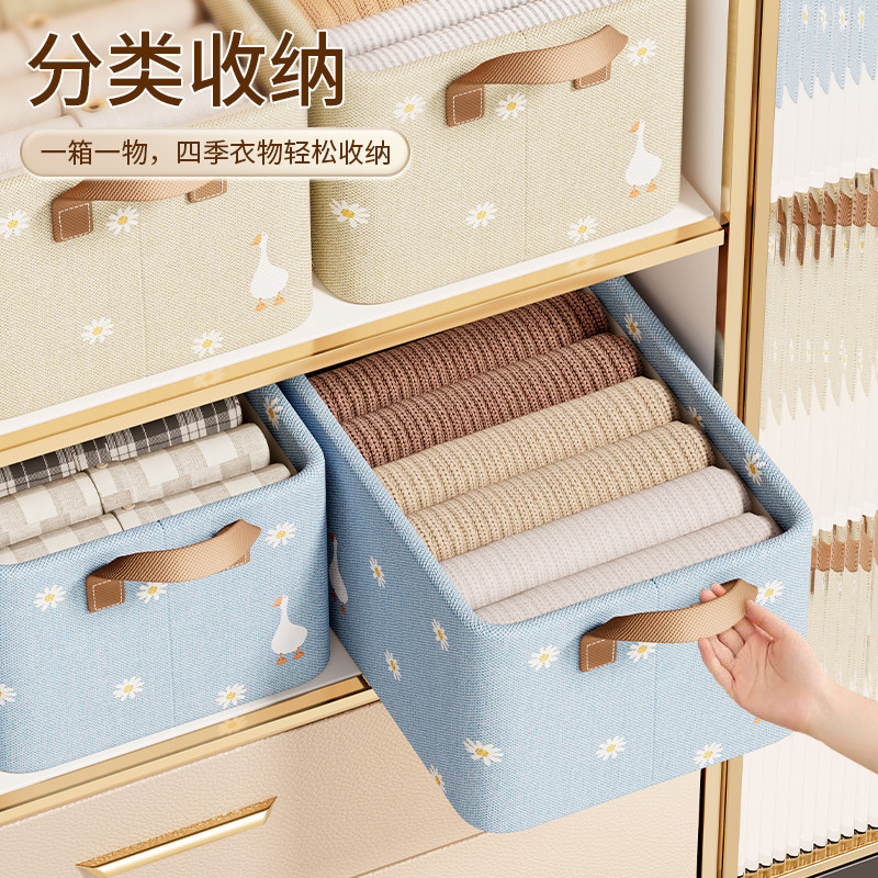 拍1发4衣服收纳筐神器布艺装衣物衣柜分层收纳箱家用框裤子整理盒
