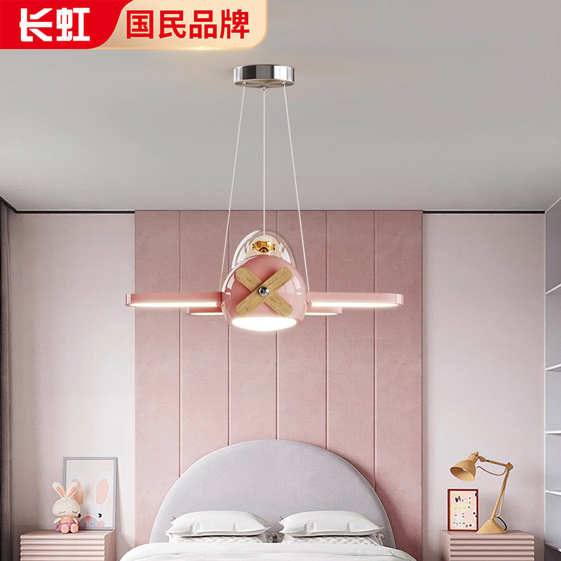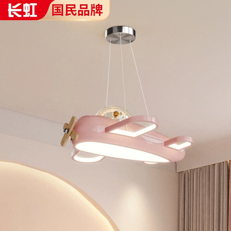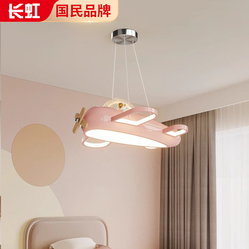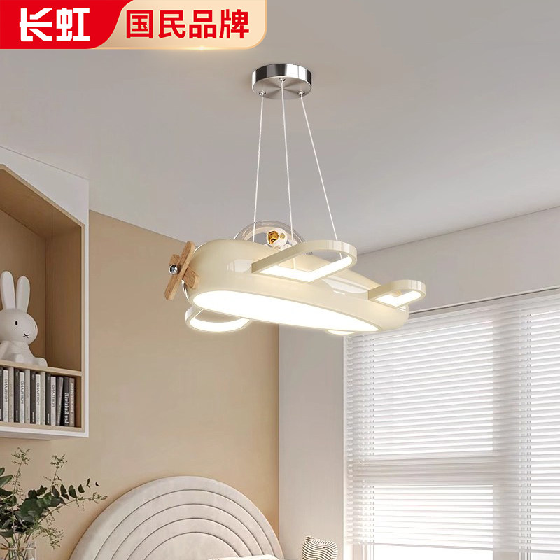 长虹飞机灯儿童房吊灯奶油风卧室男孩女孩房间创意卡通宇航员灯具