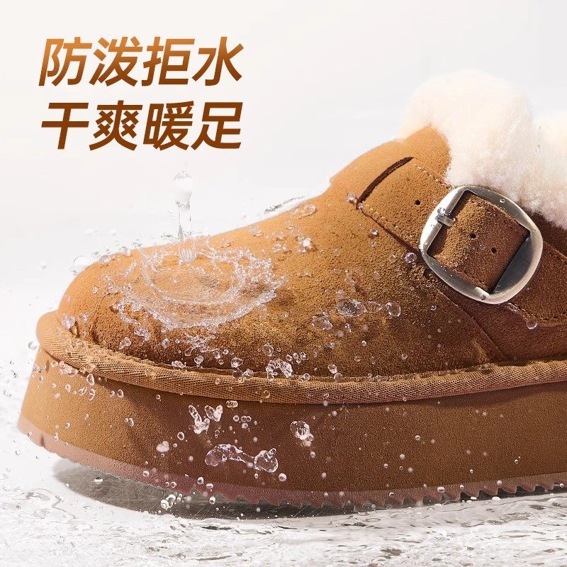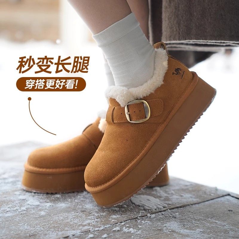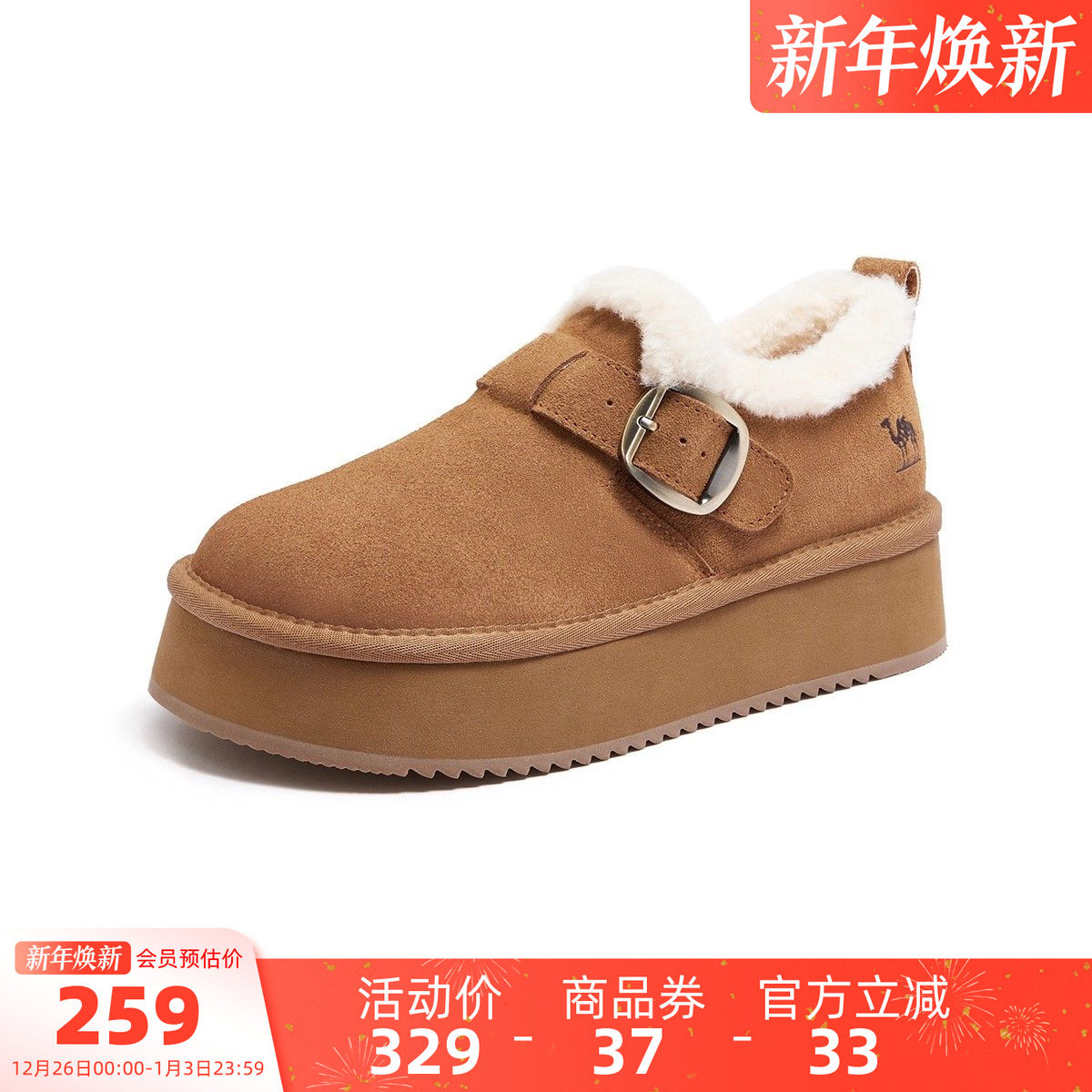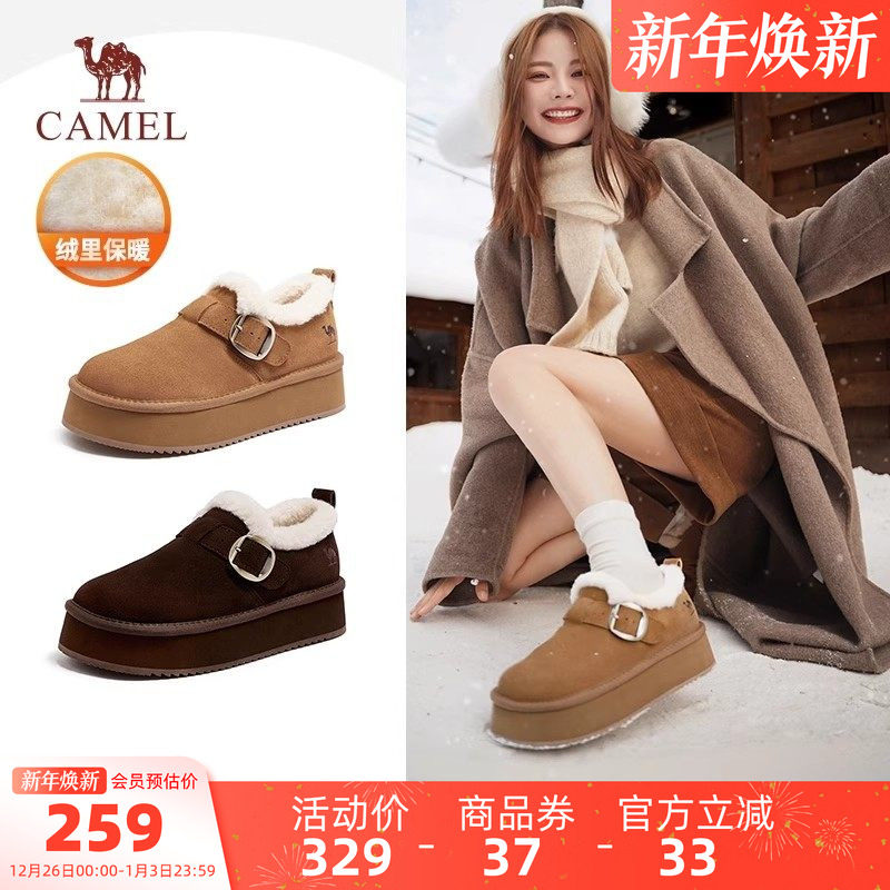 骆驼女鞋2025冬季新款厚底加绒保暖雪地靴毛毛鞋休闲勃肯鞋棉鞋女