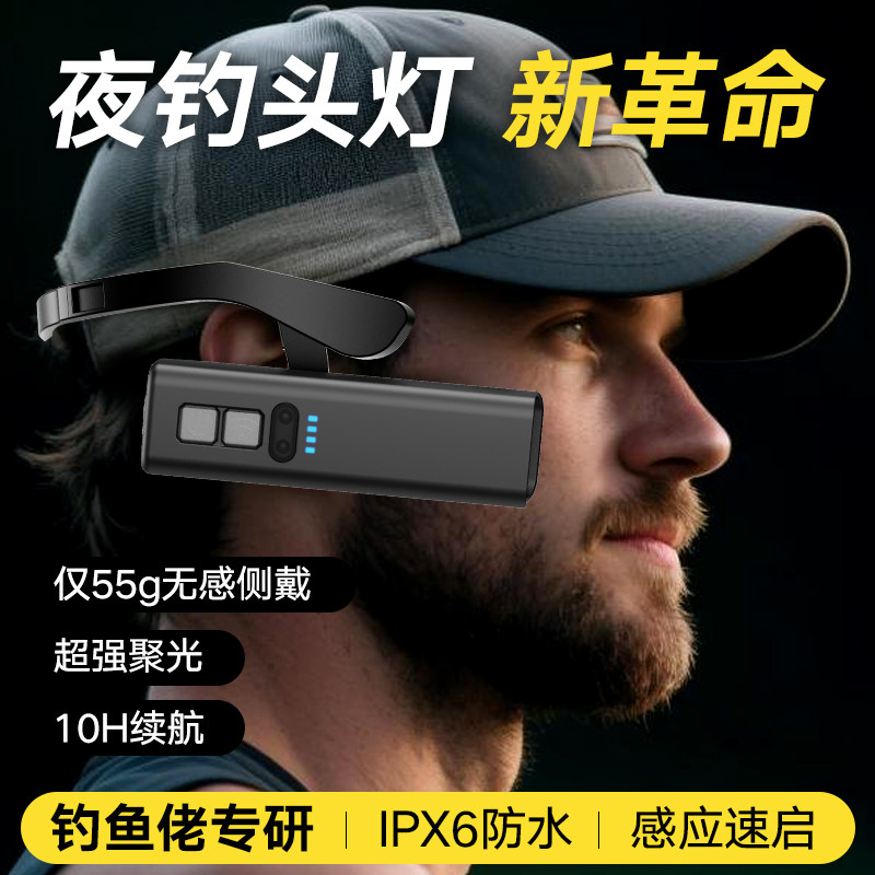 沃尔森夜钓头灯超长续航钓鱼专用感应帽夹灯强光超亮充电头戴夹帽