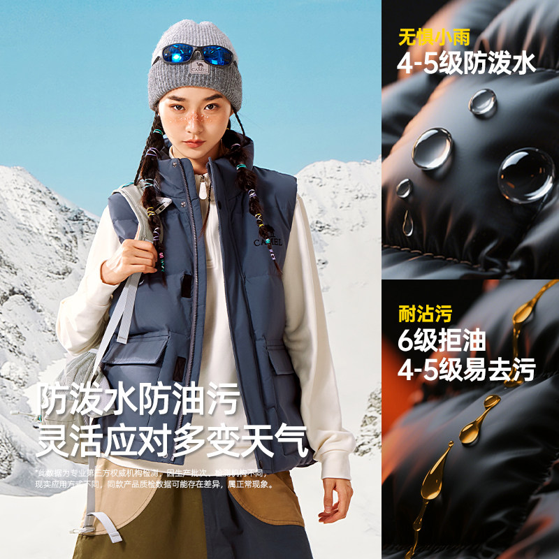 骆驼女装羽绒马甲2025新款秋冬户外防水防污保暖羽绒马甲男女外套