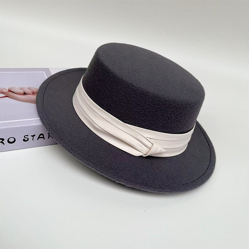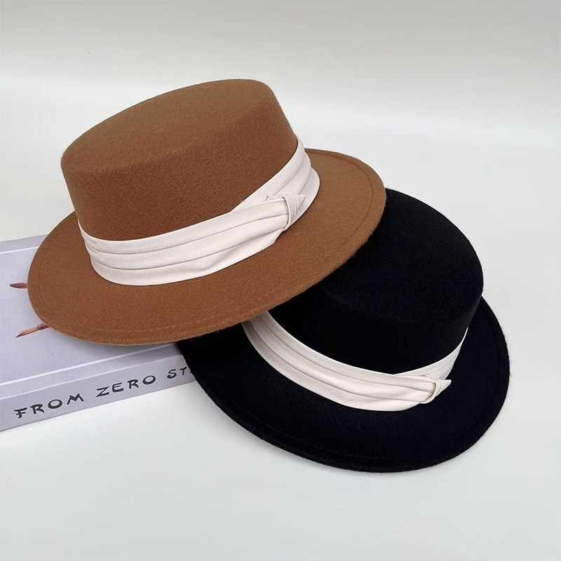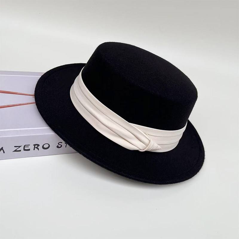 简约毛呢礼帽女平顶法式礼帽秋冬款英伦复古百搭平檐爵士帽男
