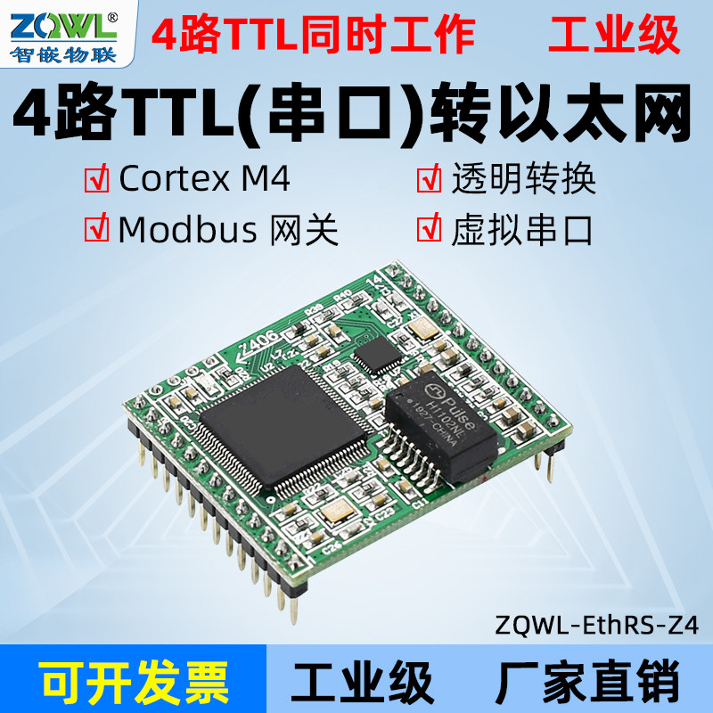【智嵌物联】4路TTL串口服务器串口转以太网模块网口工业级Modbus RTU/TCP网关透明传输网络串口通讯服务器