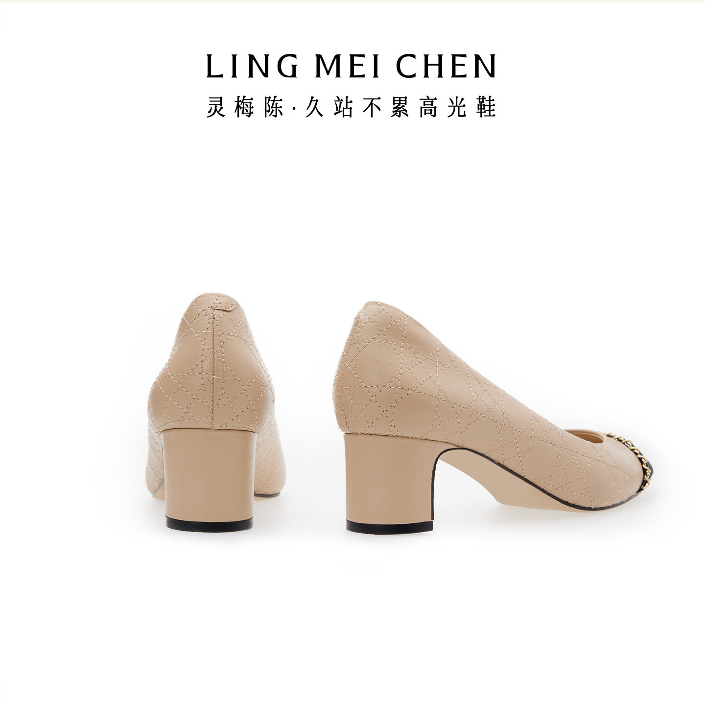 绗缝肌理设计,鞋头穿皮浅金色链条