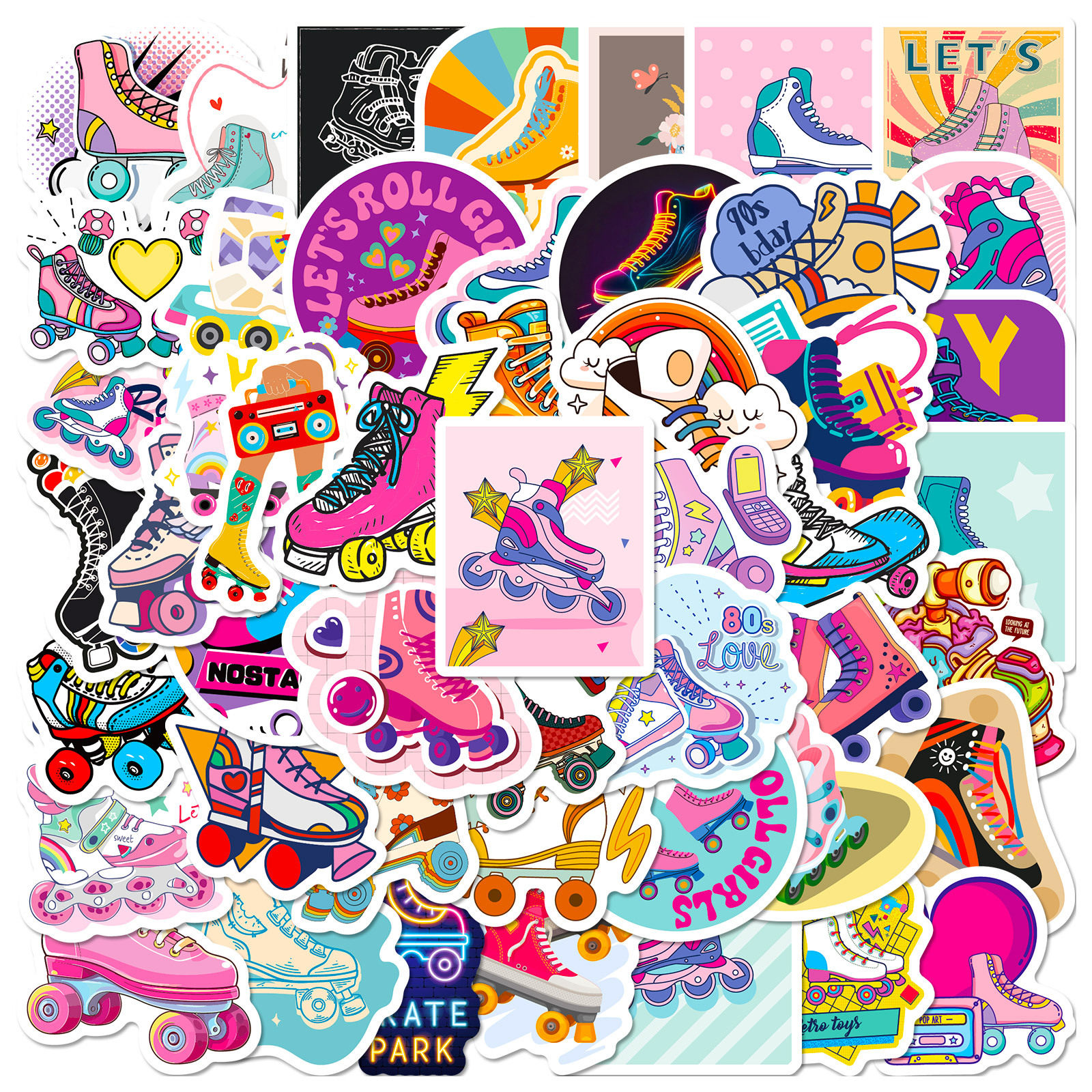 50贴旱冰轮滑鞋跨境新品手机平板个性DIY装饰贴画反复贴防水贴纸