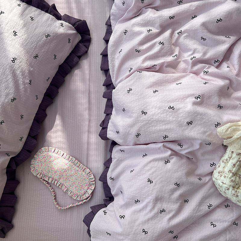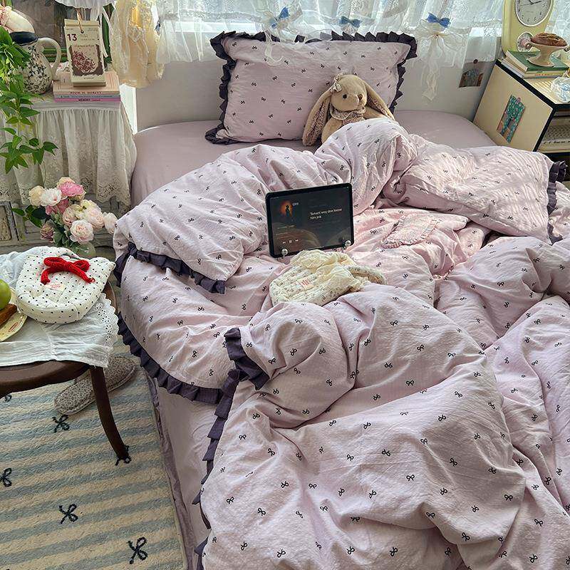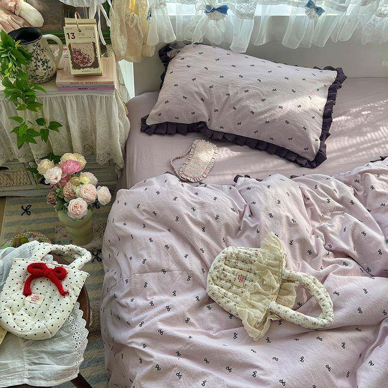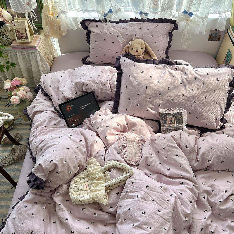 A类花边四件套纯棉全棉母婴级碎花被套罩床单宿舍床上用品三件套4