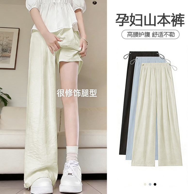 孕妇山本阔腿裤夏季薄款外穿奶芙裤宽松大码冰丝孕期打底裤子夏装