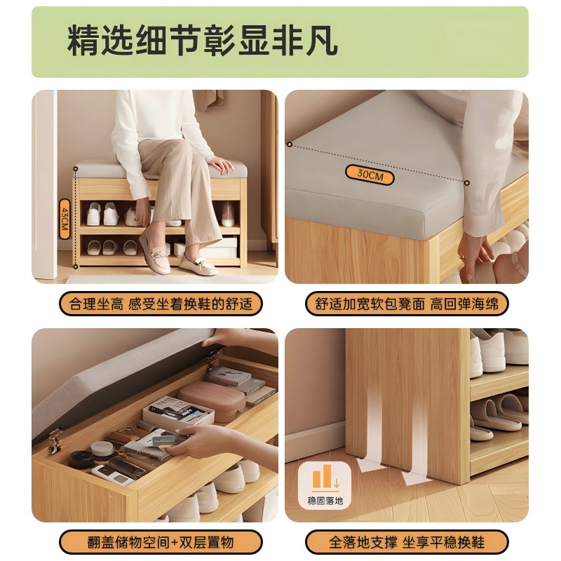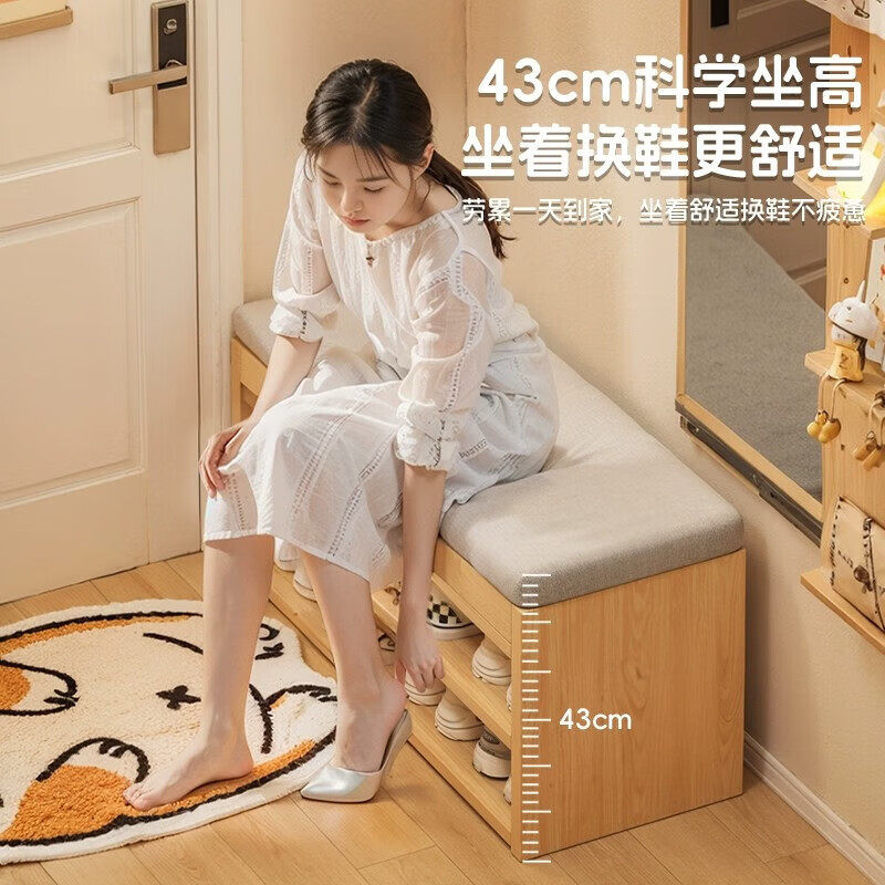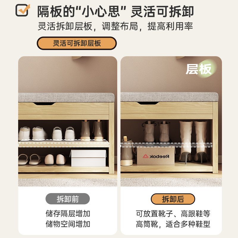 换鞋凳门口家用鞋柜坐凳一体原木风简易多层储物玄关入户穿鞋凳子