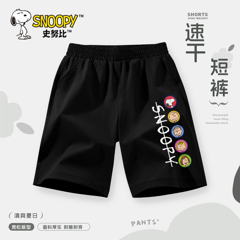 史努比男童夏装裤子2025新款男大童运动裤速干五分裤夏季儿童短裤