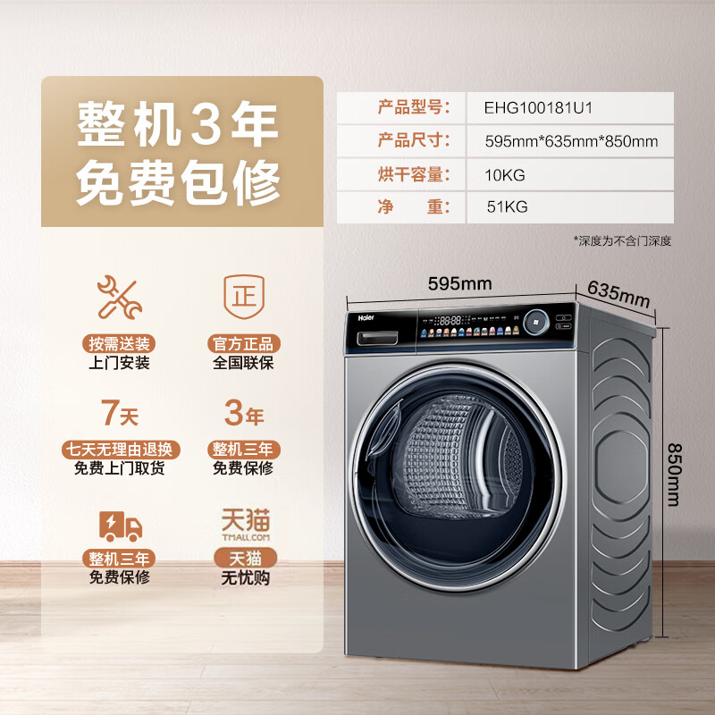 海尔10kg智能家用全自动除菌除屑滚筒干衣机热泵烘干机181