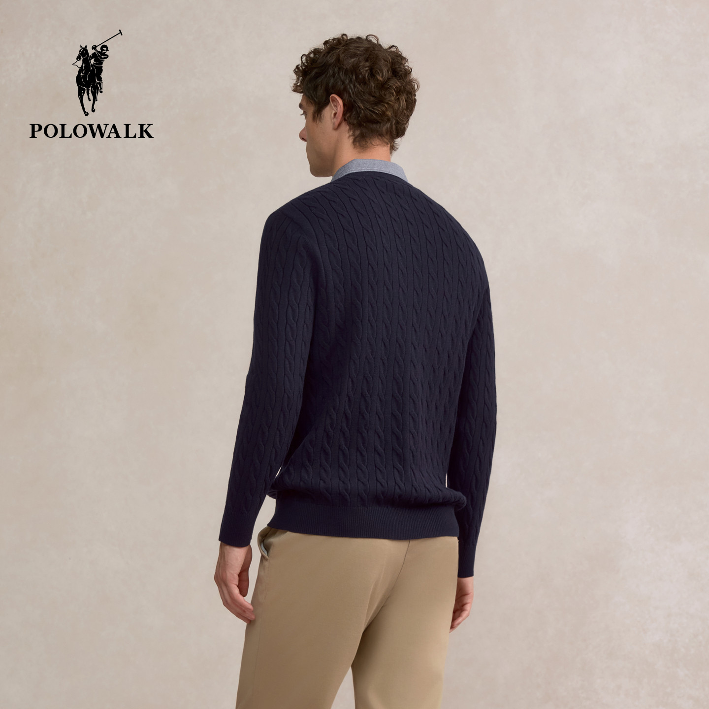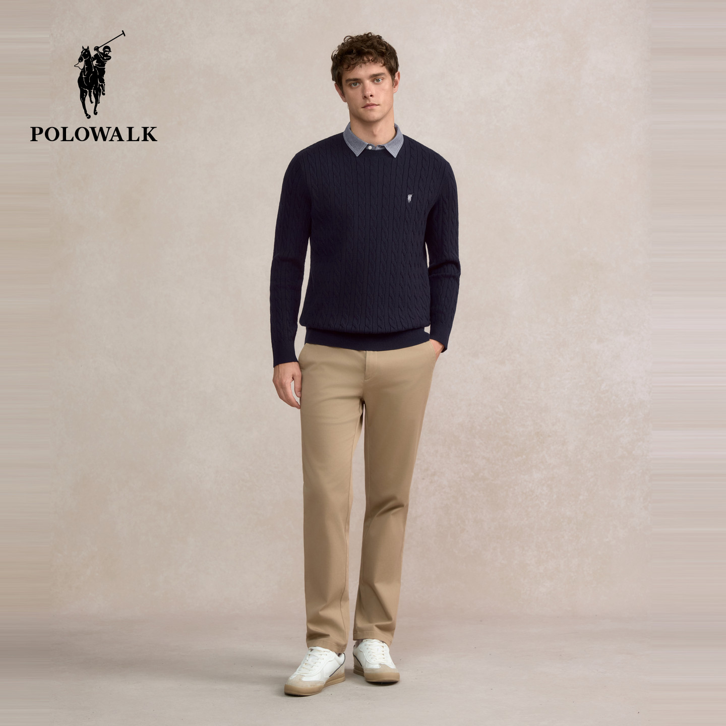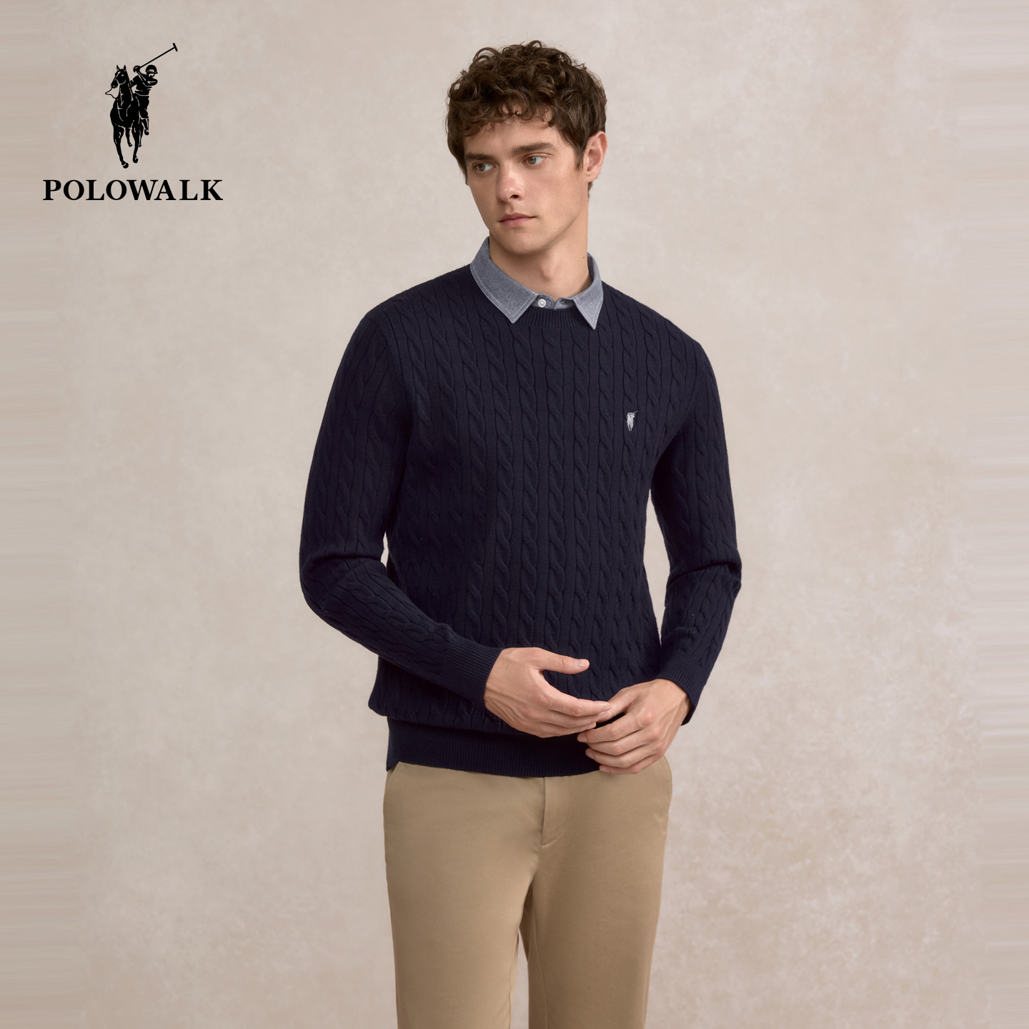 POLOWALK男装针织衫2025秋季新品假两件商务韩系绞花男式套头上衣