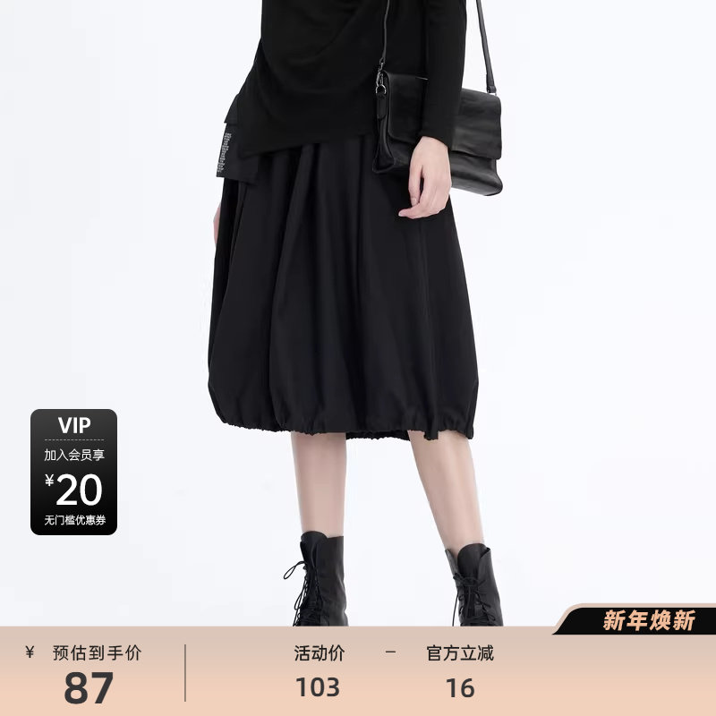 RAPPEYE 设计感褶皱折叠伞裙显瘦高腰不规则A字裙小个子半身裙女