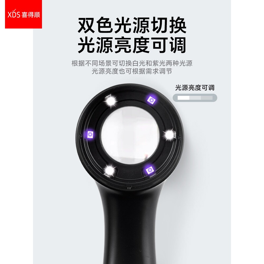 XDS电子维修专用放大镜60倍高清工程师电路板焊接飞线ic芯片电子元件检查修表带led灯手持便携式高倍扩大镜