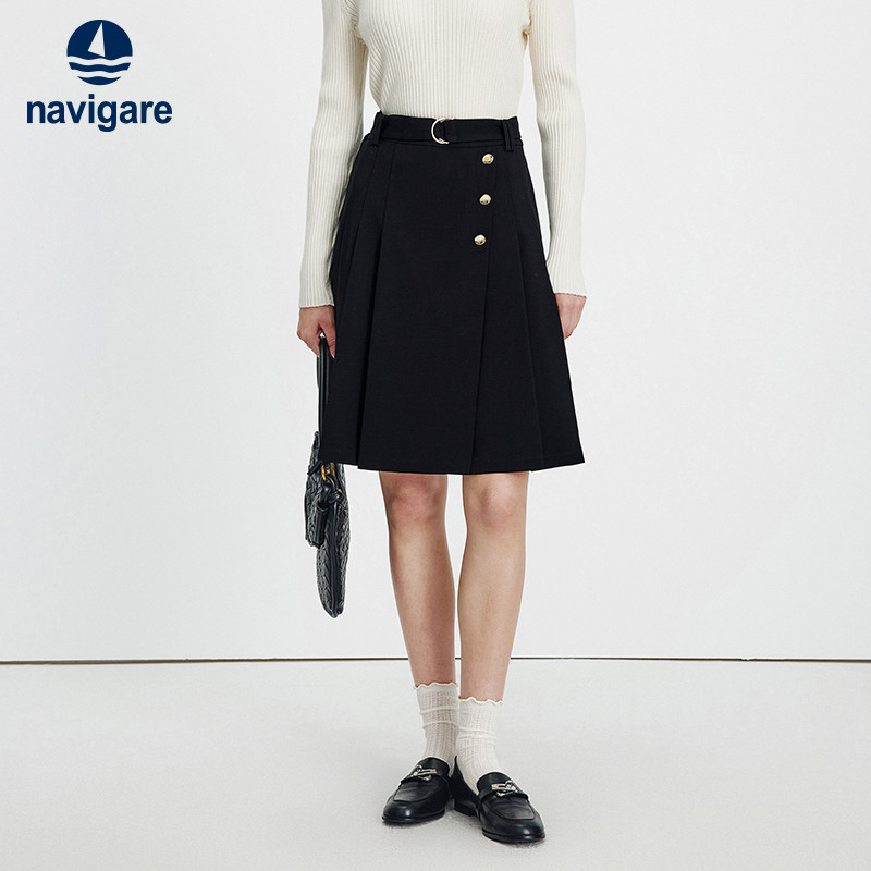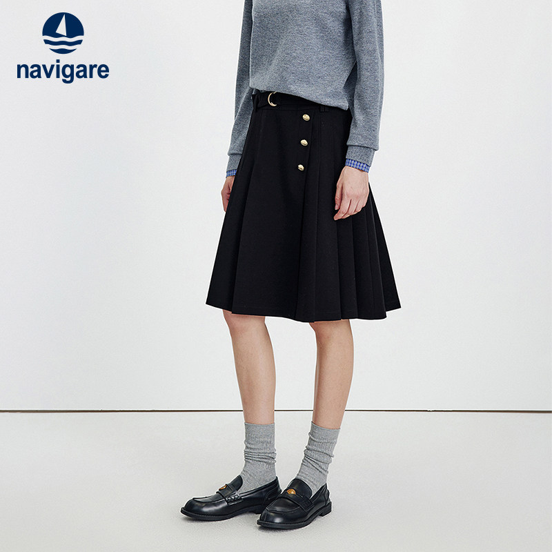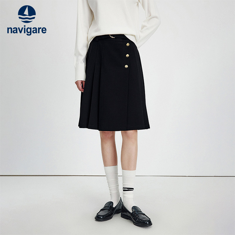 Navigare意大利小帆船2026春季新款半身裙女高腰A字裙显瘦百褶裙