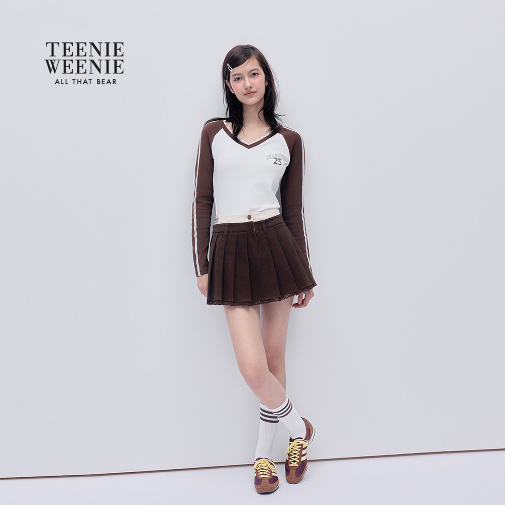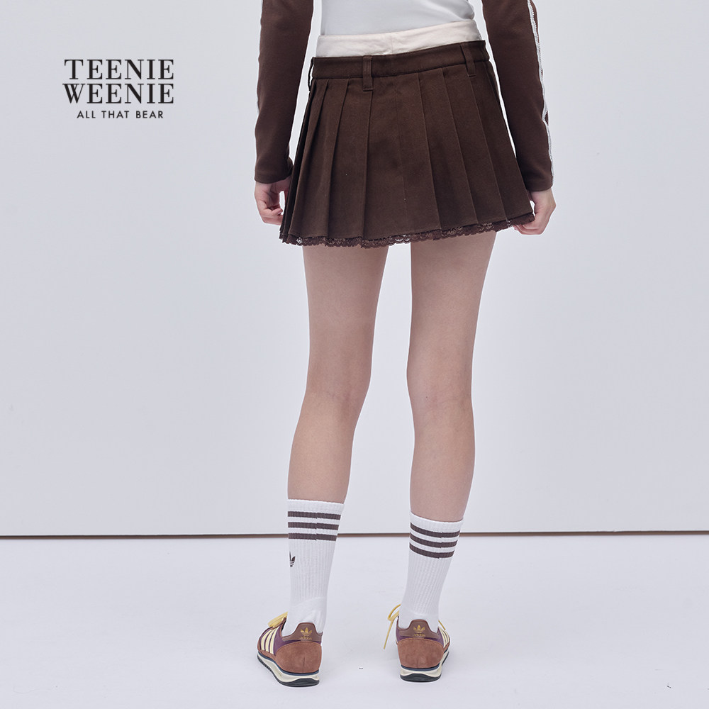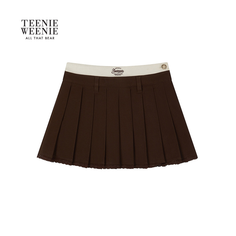 TEENIEWEENIE bearnova2025冬新款女装学院风蕾丝拼接百褶半身裙