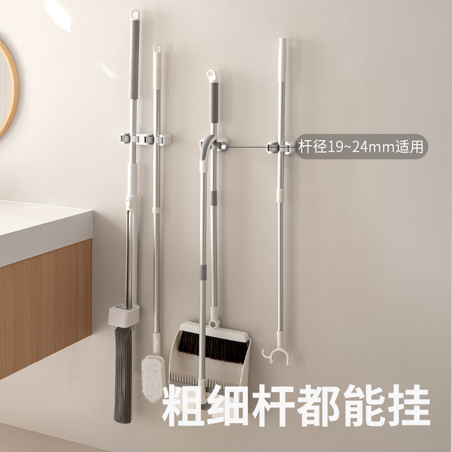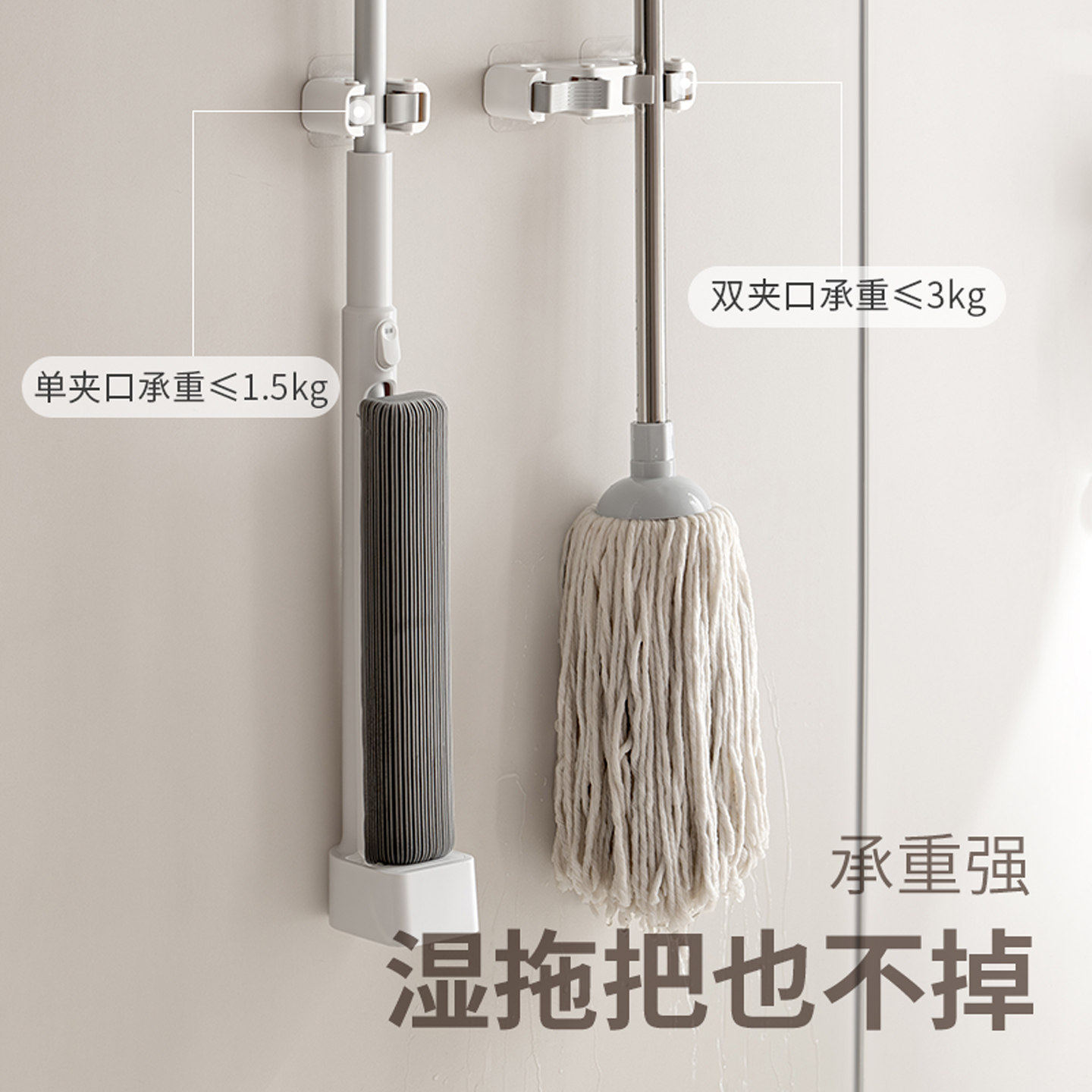 太力拖把壁挂夹吸盘挂钩浴室扫把收纳神器卫生间免打孔拖布整理架