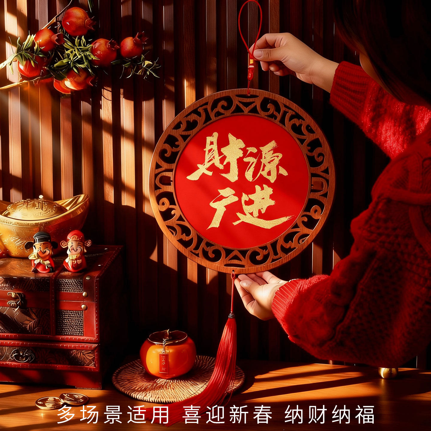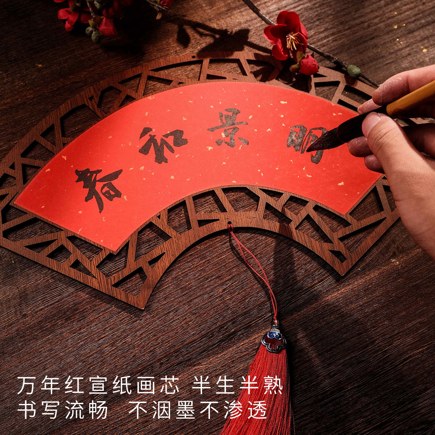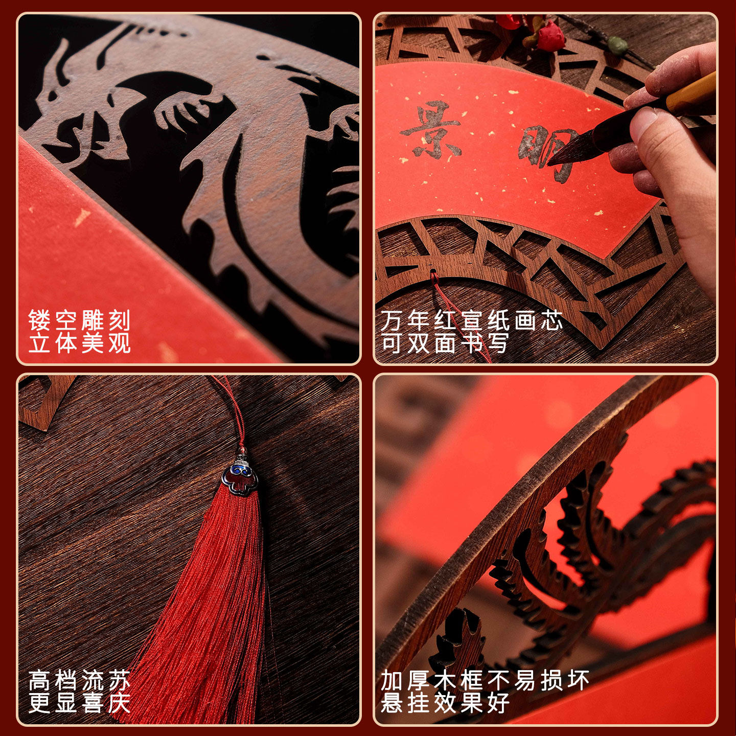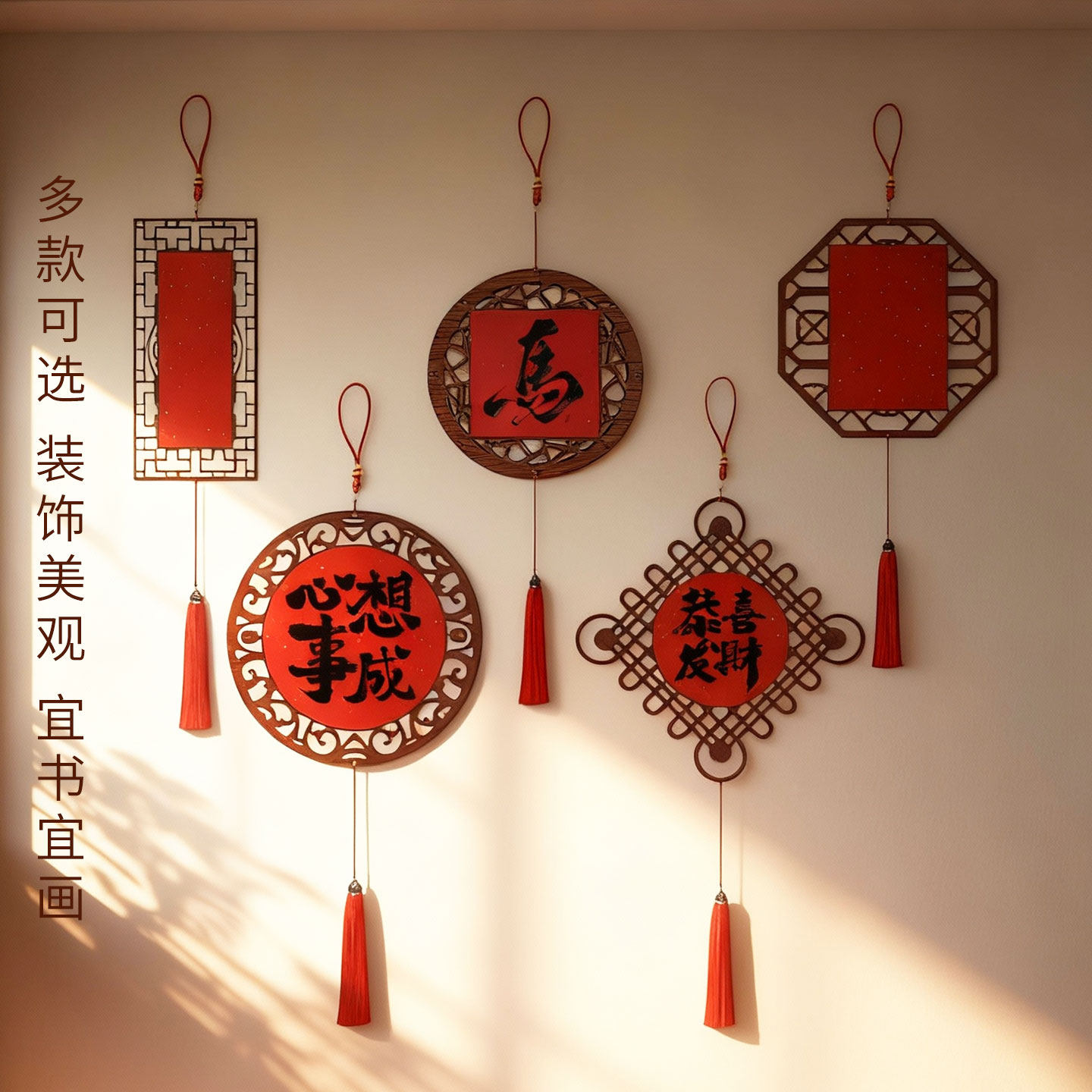 2026新中式古生宣木质镂空宣纸挂件古风空白福字国画空白纸书法斗方手写洒金创意灯笼新年春节过年装饰古风