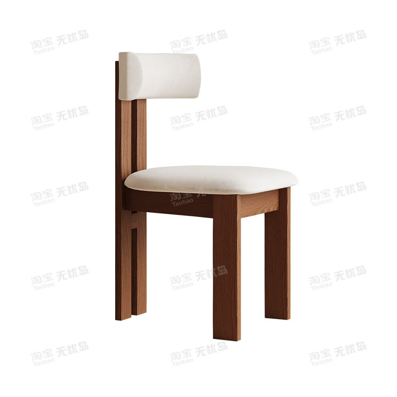 轻奢侘寂风餐椅皮软包设计师现代弯曲木咖啡厅实木椅子家用书房椅