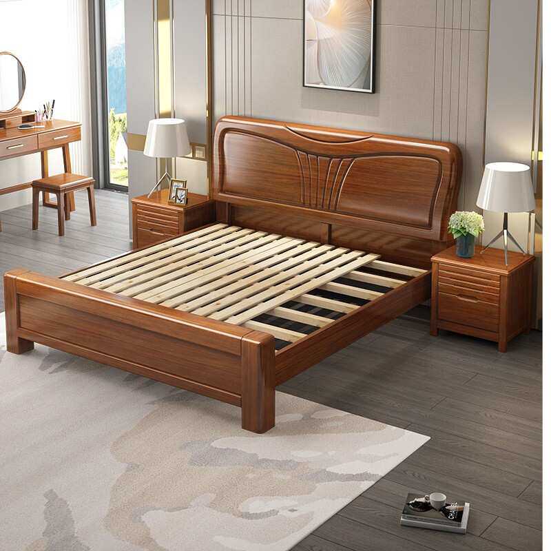 中式胡桃木床卧室实木 家具双人床现代简约主卧1.8米1.5米婚床