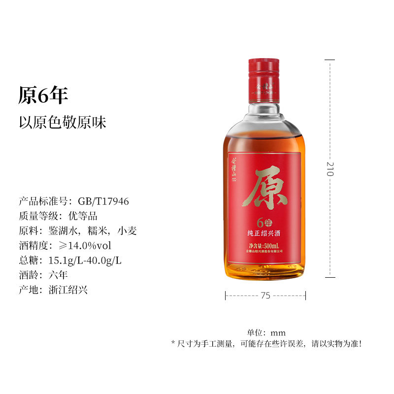 会稽山正宗绍兴黄酒原6年陈500ml*6半干型无焦糖色花雕酒冬酿纯正