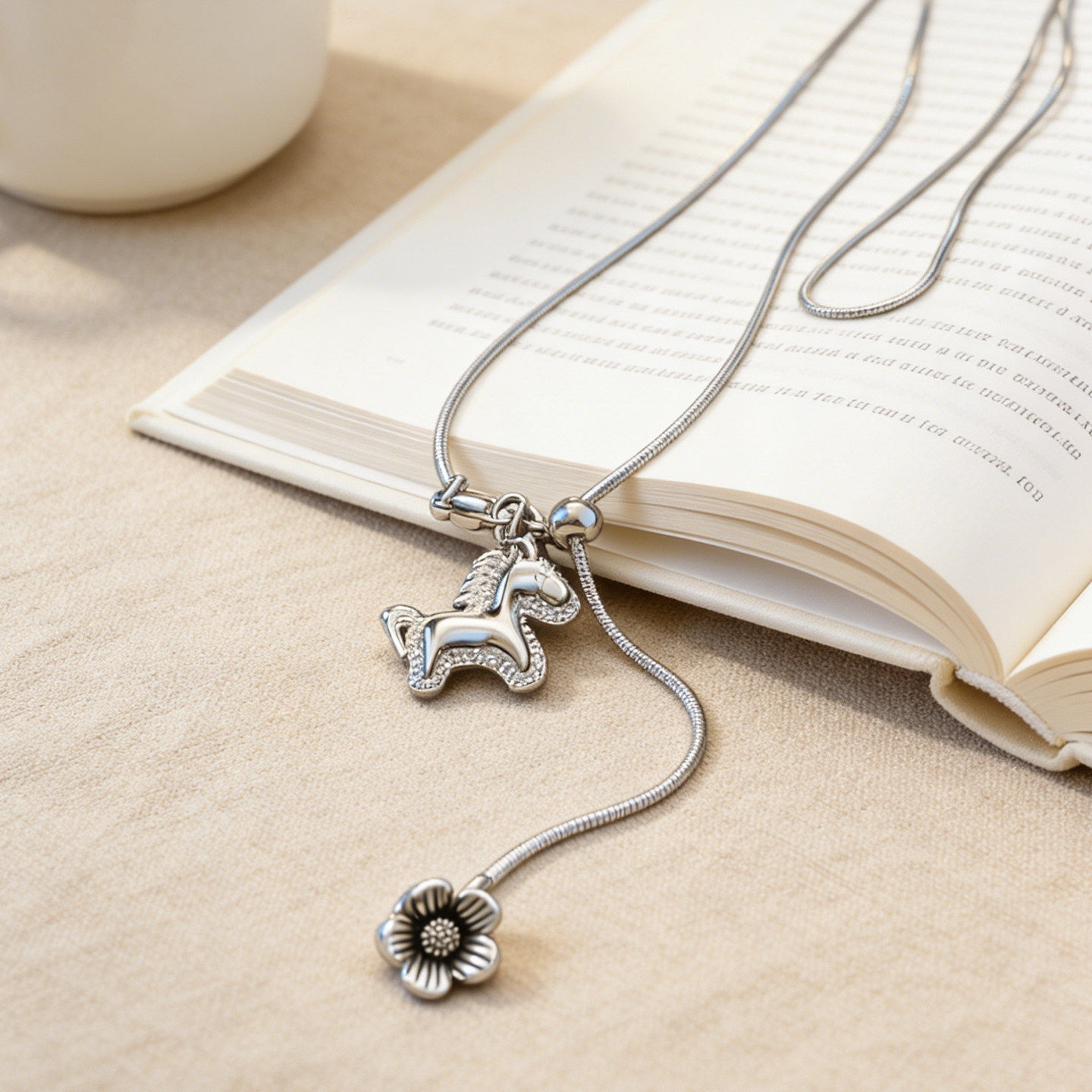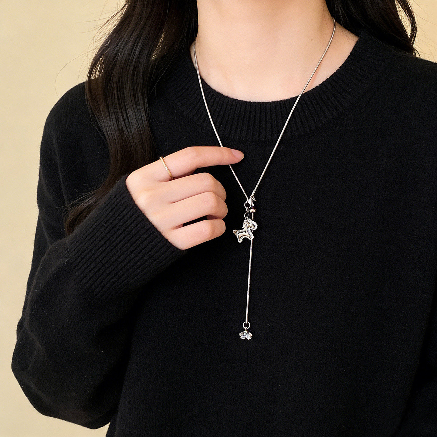 马上有钱银色马年项链女款2026新款秋冬毛衣链轻奢高级感衣服配饰