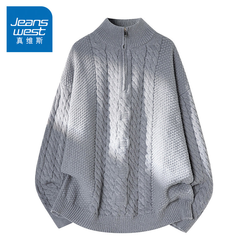 N5真维斯毛衣男2025新款秋冬季宽松情侣高领半拉链保暖男款针织衫