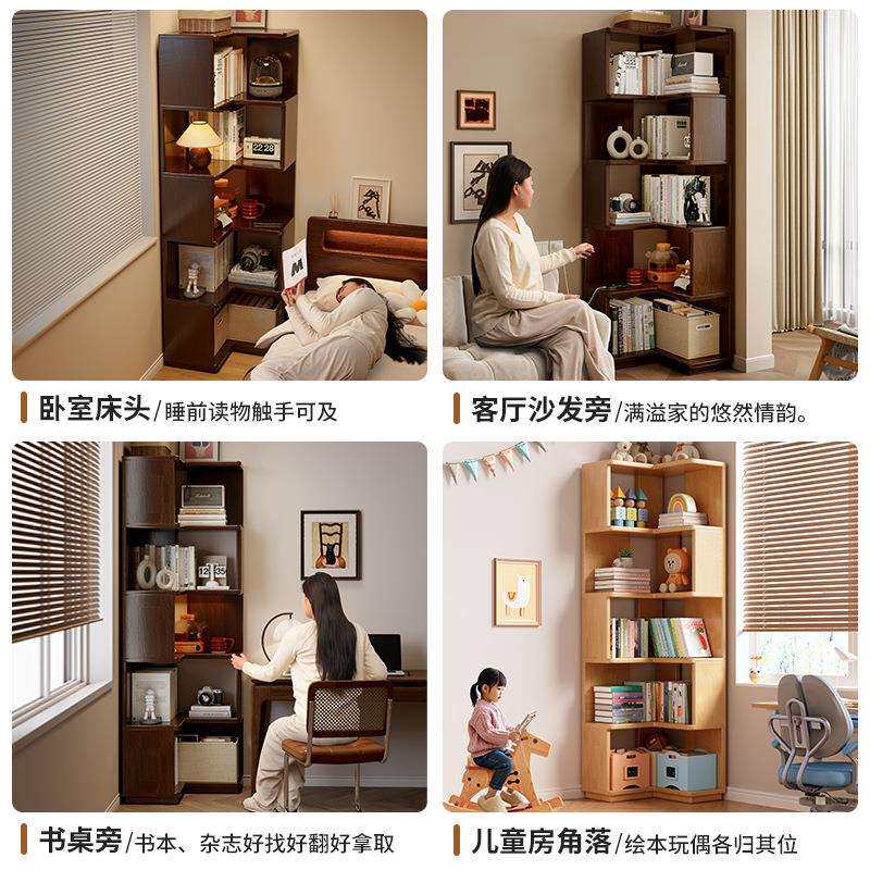 全实木转角书架落地置物架学生家用客厅角柜墙角收纳拐角床头书柜