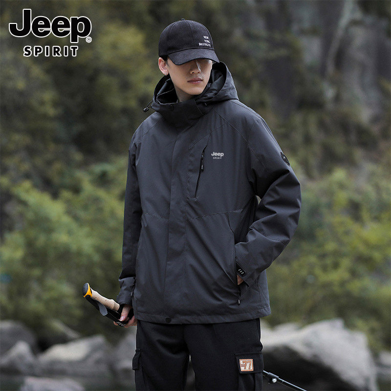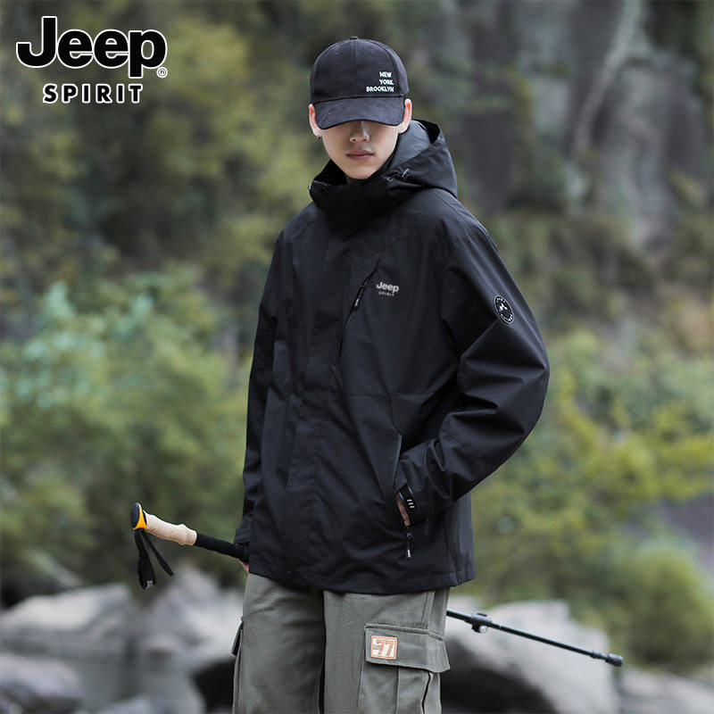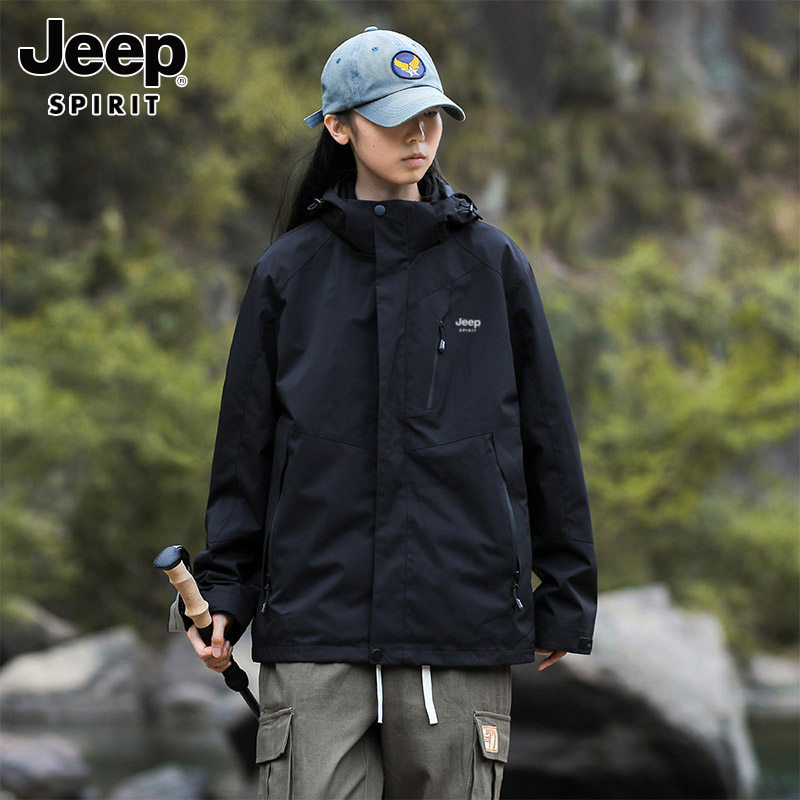 Jeep吉普户外冲锋外套男女三合一新款抓绒内胆情侣防风防雨登山服