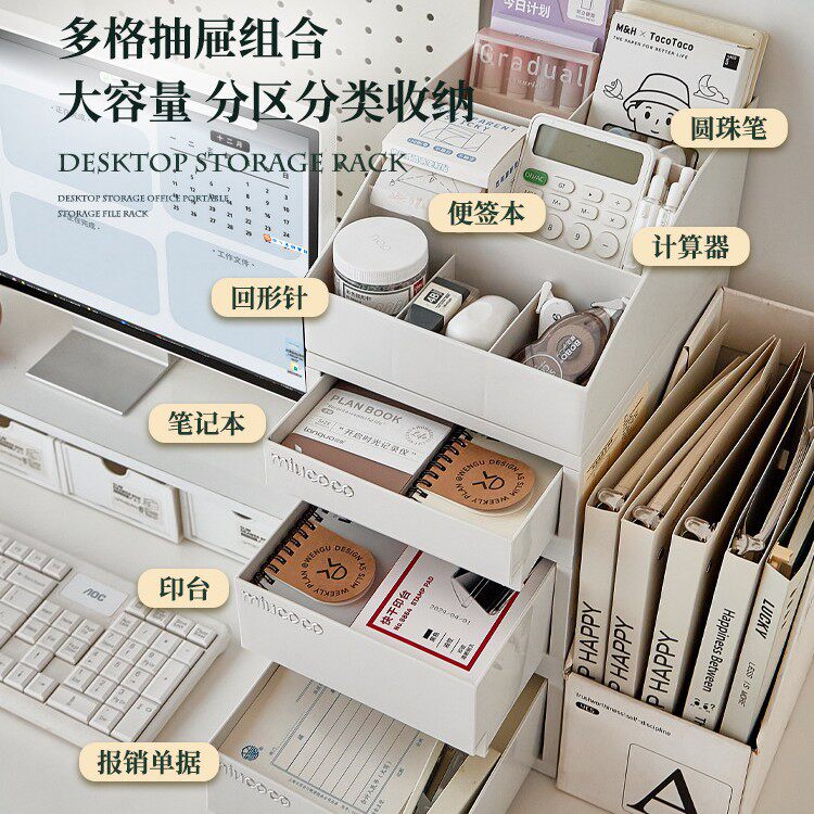 各类办公用品收纳盒可叠加桌面抽屉式a4文件工位多层储物柜置物架