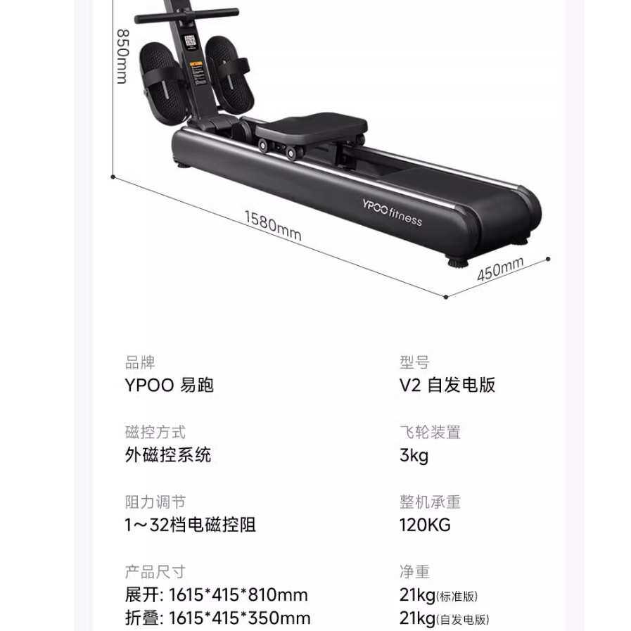 YPOO易跑方舟V2划船机家用健身自发电智能磁阻室内龙舟训练机器材