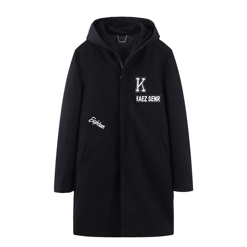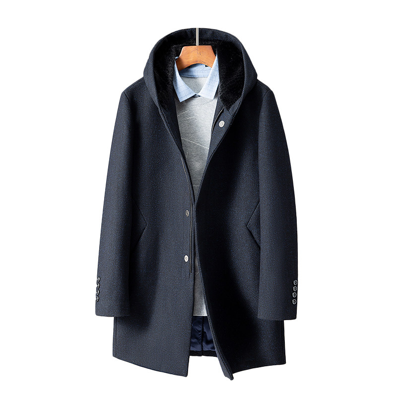 商务休闲断码清仓撤柜秋冬款男士含羊毛中长毛呢大衣连帽外套上衣
