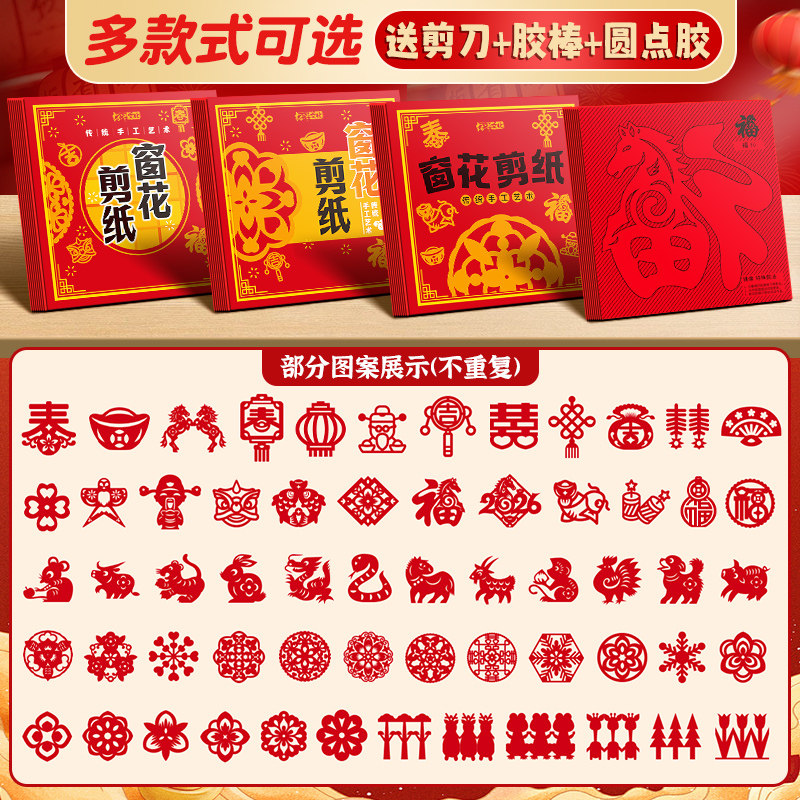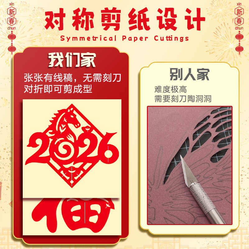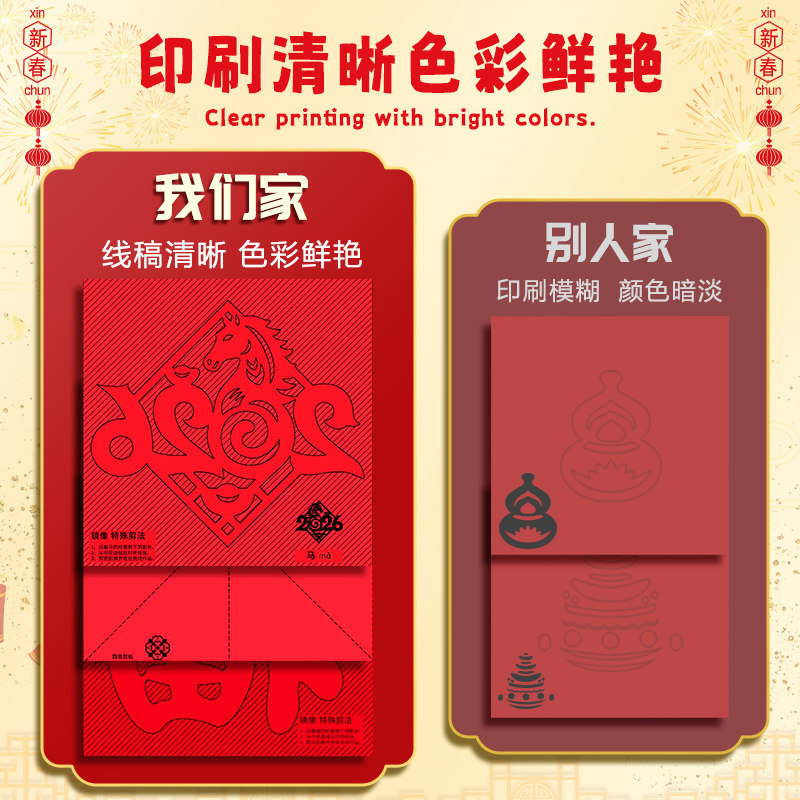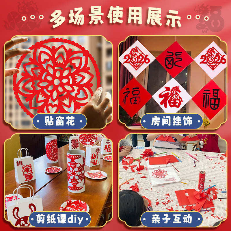 2026年马年剪纸儿童手工图案底稿剪窗花纸剪纸福字中国风春节折纸专用纸新年手工diy制作材料包幼儿园半成品