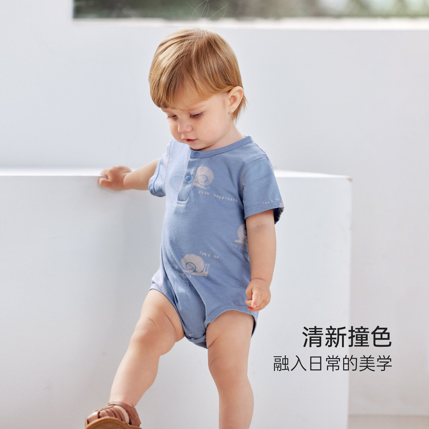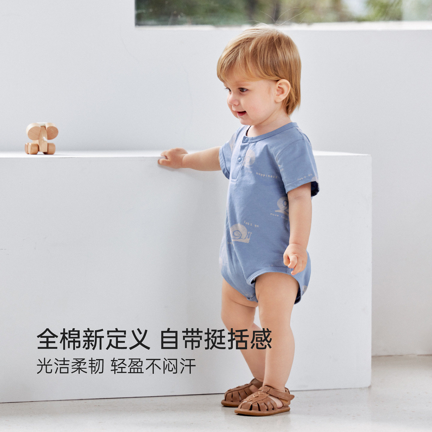 babylove婴儿包屁衣夏季薄款男宝宝纯棉短袖三角哈衣爬服慢慢夏日