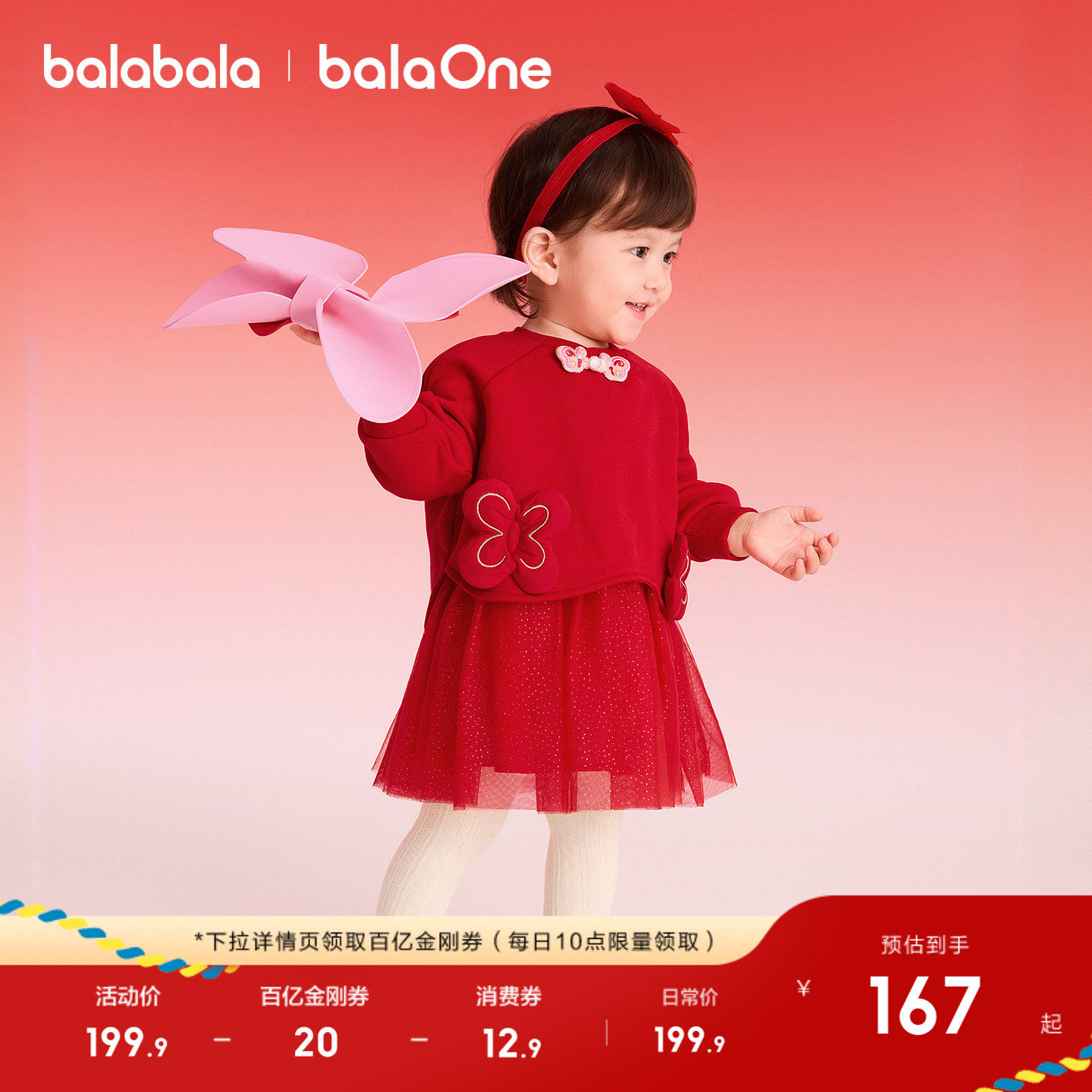 巴拉巴拉女童连衣裙宝宝拜年裙子冬装新款童装儿童红色洋气公主裙